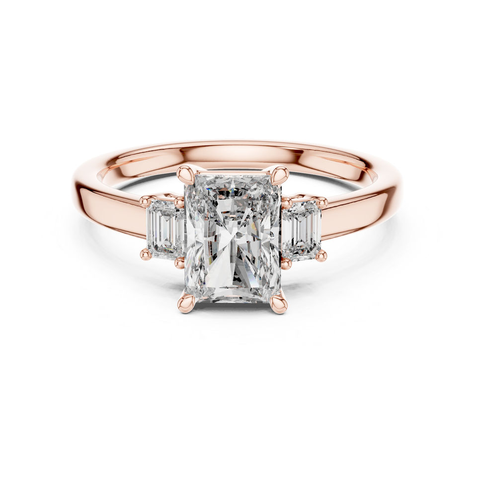แหวนทองคำโรสโกลด์ 14K ประดับเพชรเม็ดใหญ่ 1.7 กะรัต ทรงเรเดียนท์และทรงมรกต เพชรเพาะเลี้ยงในห้องปฏิบัติการ รับรองโดย IGI สำหรับผู้หญิง