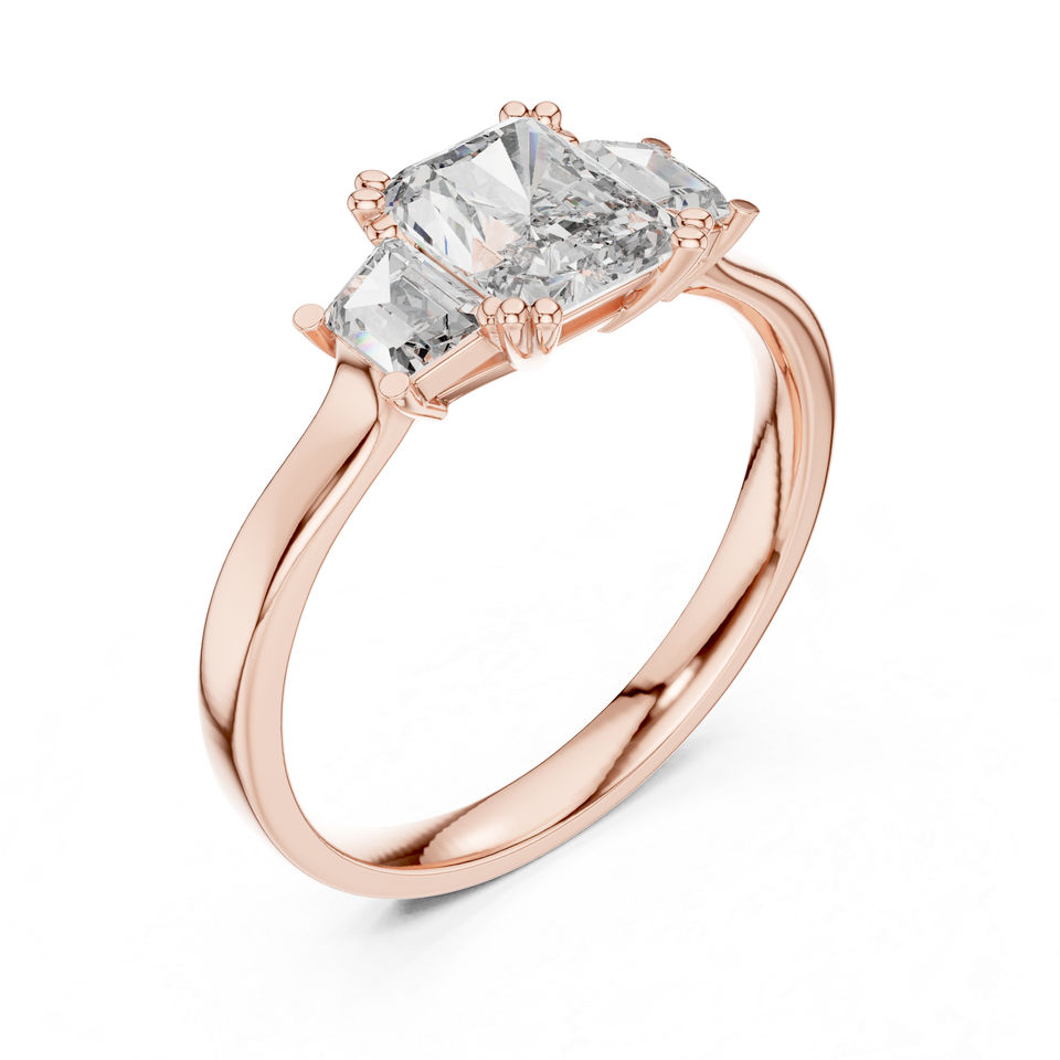 แหวนหมั้นเพชรทรงรัศมี 1.4 กะรัต เพชรเลี้ยงในห้องปฏิบัติการ ทองคำชมพู 14K สำหรับผู้หญิง | เพชรเพาะเลี้ยงใหม่ระดับหรูหราที่ได้รับการรับรองจาก IGI