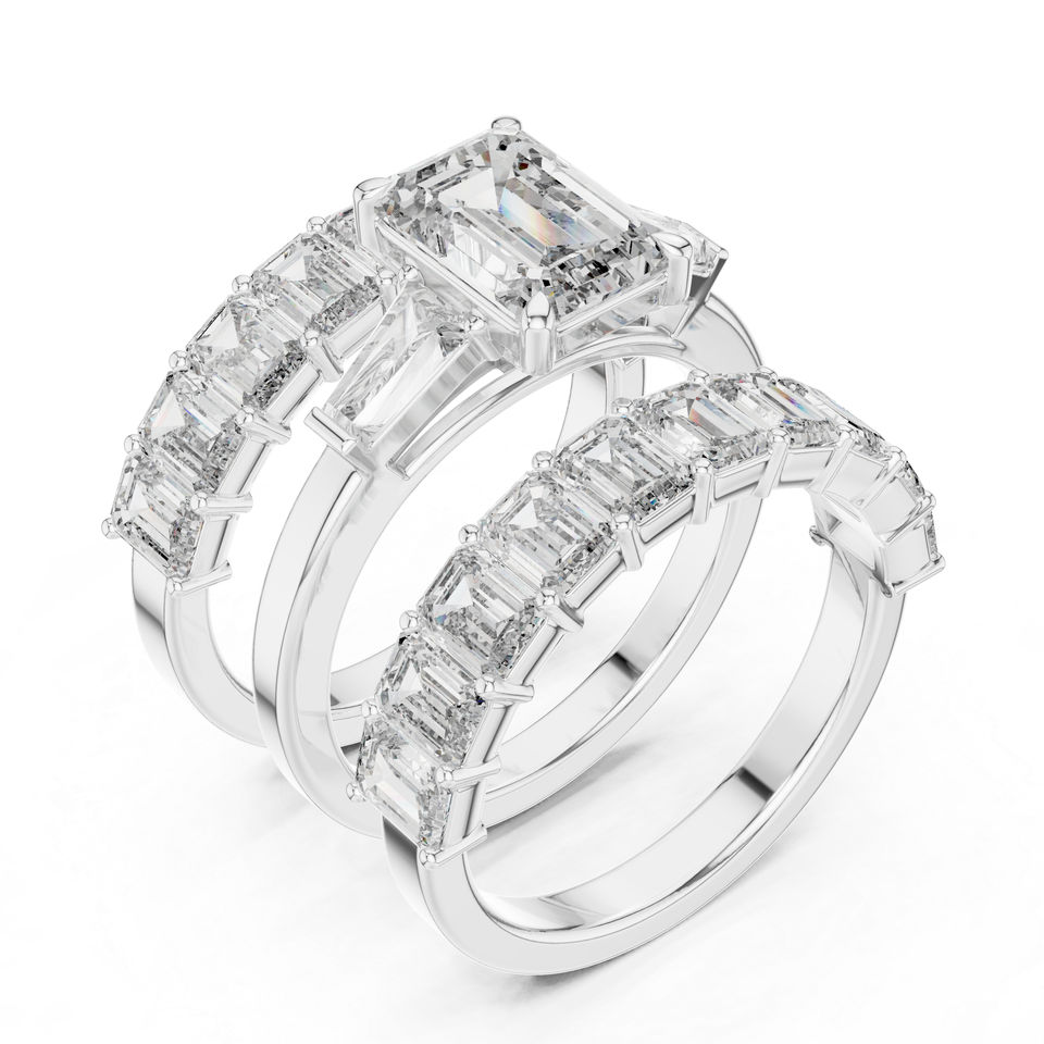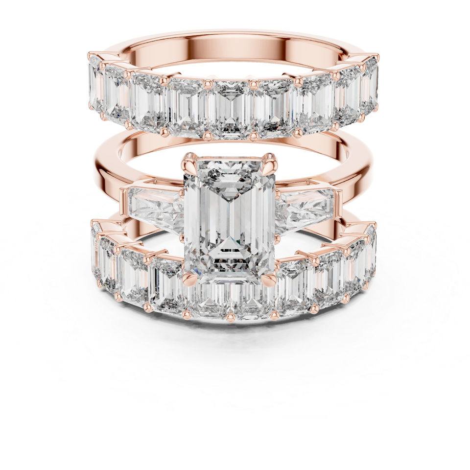 แหวนหมั้นทองคำโรสโกลด์ 14K ประดับมรกตและเพชรทรงบาแก็ตต์เพาะเลี้ยงสำหรับผู้หญิง | เพชรที่เพิ่งเพาะเลี้ยง