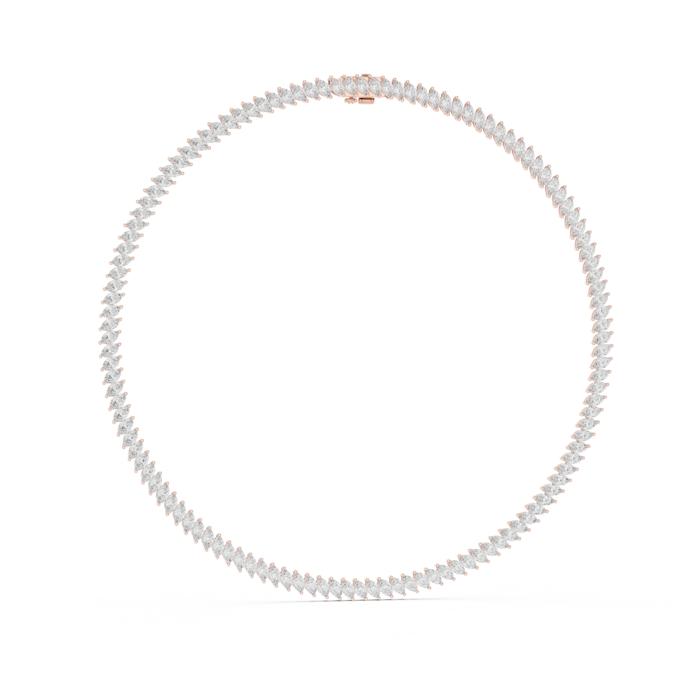 สร้อยคอเทนนิสเพชรแล็บโกรว์ทรงวีเซ็ต 14K โรสโกลด์ อีเทอร์น่า คัตอิมพีเรียล มาร์คีส์ หรูหรา