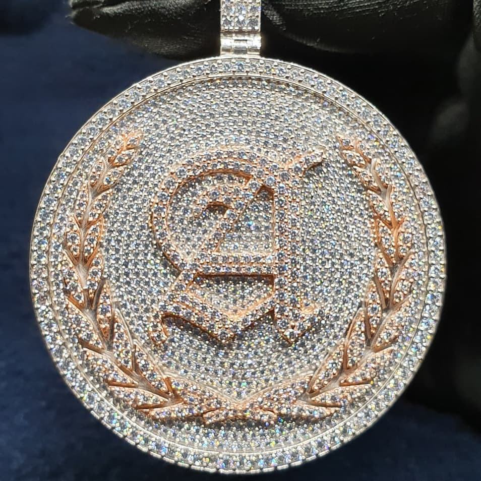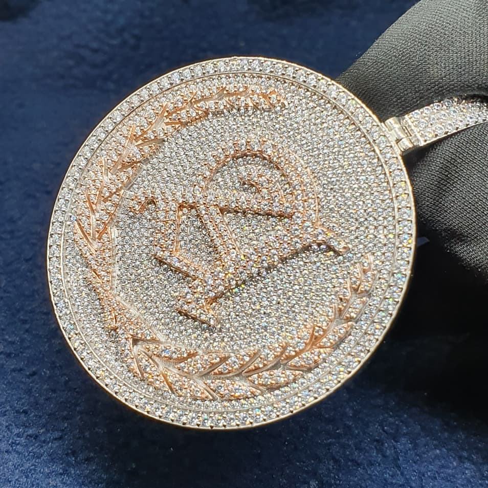 จี้ฮิปฮอปสำหรับผู้ชายประดับเพชรเม็ดสีโรสโกลด์14K ออกแบบได้ตามต้องการ