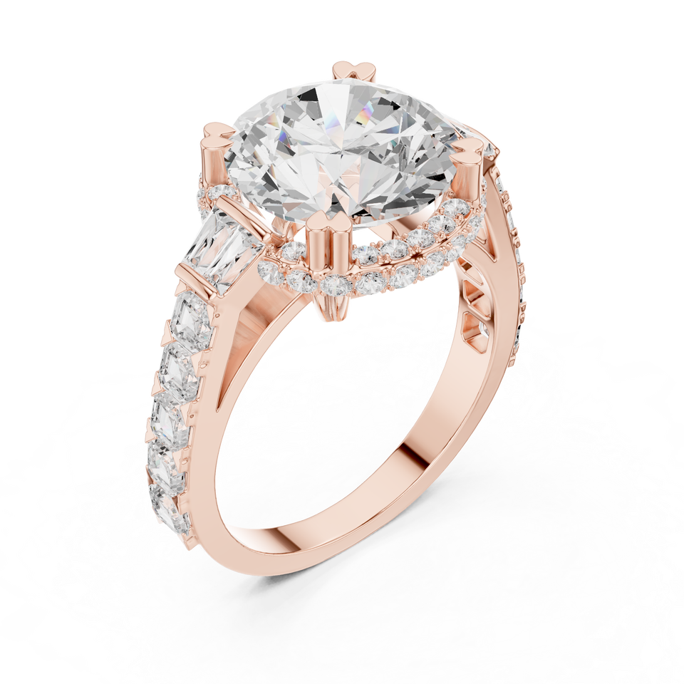 แหวนเพชรทรงบริลเลียนต์ 14K โรสโกลด์ เพชรเลี้ยงในห้องปฏิบัติการ ดีไซน์มินิมอลคลาสสิก ชุดแหวนหมั้น รุ่นอิมพีเรียลโรส บริลเลียนซ์