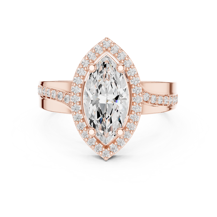 แหวนหมั้นเพชรแล็บโกรว์ 14K โรสโกลด์ ดีไซน์มินิมอล คลาสสิก รุ่น Luminara Marquise Halo Imperial Marquise ของ S VIRVADIYA