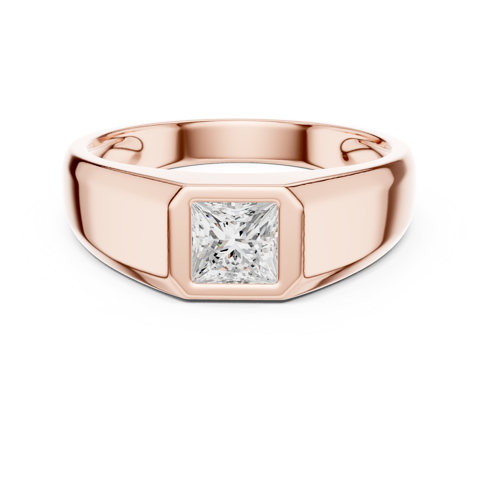 แหวนตราประทับเพชรทรงเจ้าหญิง 14K โรสโกลด์ เพชรเพาะเลี้ยงทรงสี่เหลี่ยม แหวนตราประทับเพชรทรงเจ้าหญิงทันสมัย