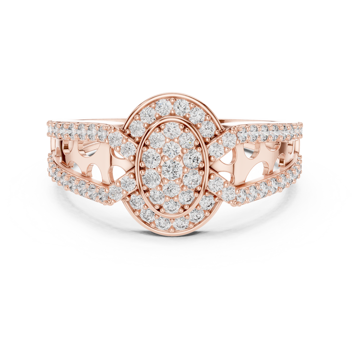 แหวนหมั้นเพชรทรงบริลเลียนต์แบบมินิมอลคลาสสิก 14K โรสโกลด์ เพชรเลี้ยงในห้องปฏิบัติการ ดีไซน์ออโรร่าทวิสต์ ฮาโล ไดมอนด์ อินฟินิตี้ บลูม
