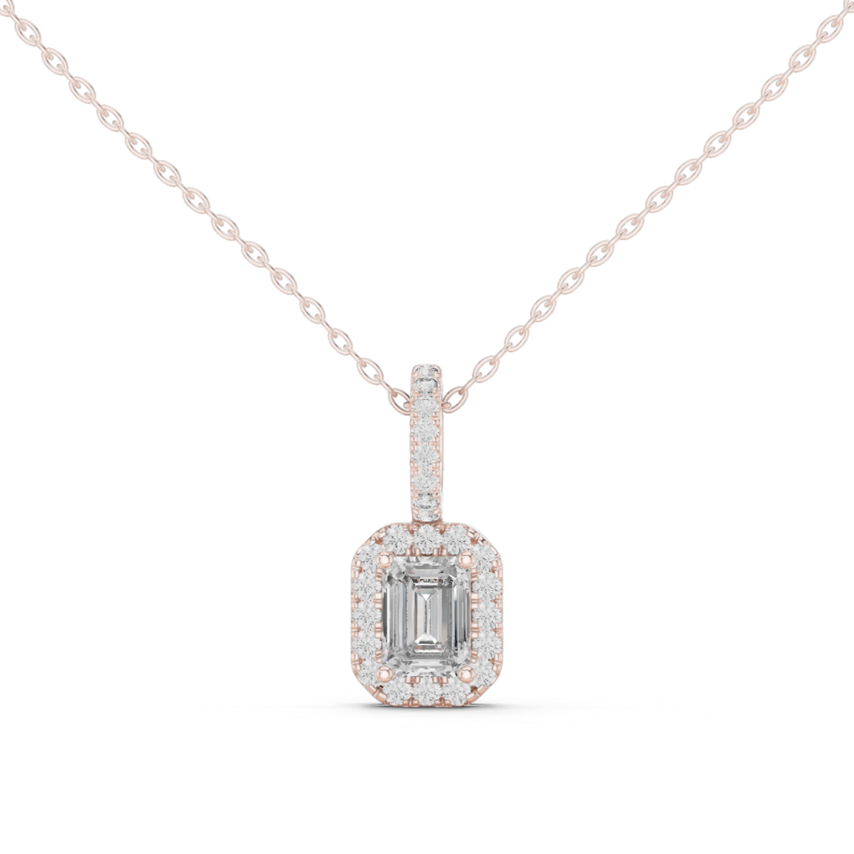 จี้เพชรทรงกลมสีเขียวมรกตหรูหรา 14K โรสโกลด์ ประดับเพชรแล็บโกรว์ทรงรัศมี สำหรับผู้หญิง