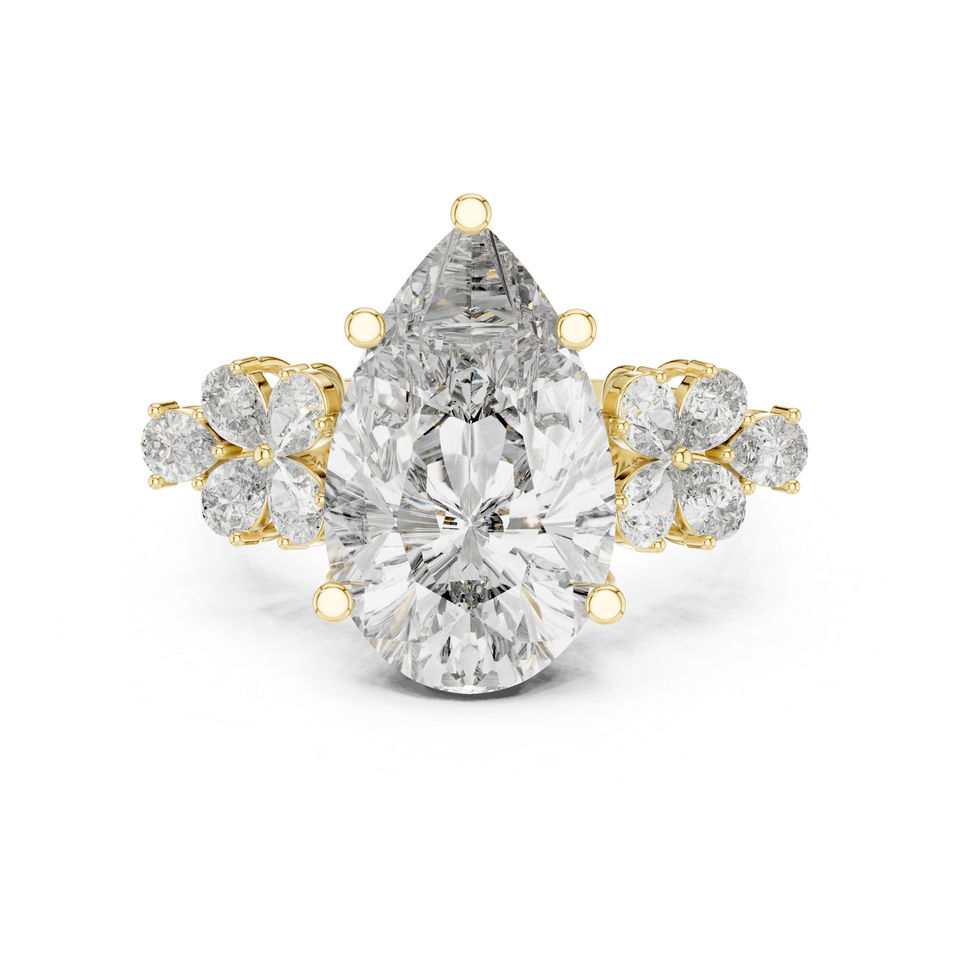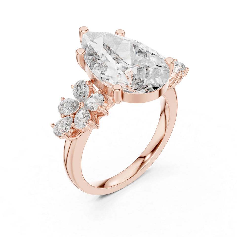 แหวนหมั้นเพชรรูปหยดน้ำสีชมพู 14K โรสโกลด์สำหรับผู้หญิง | เพชรที่เพิ่งเพาะเลี้ยง
