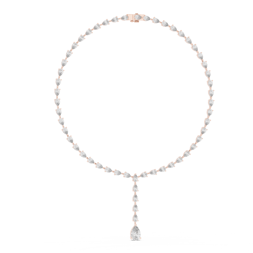 สร้อยคอมุกชุบทองคำสีกุหลาบ 14K พร้อมเพชรทรงลูกแพร์สังเคราะห์จากห้องปฏิบัติการ เครื่องประดับหรูหราสำหรับผู้หญิง