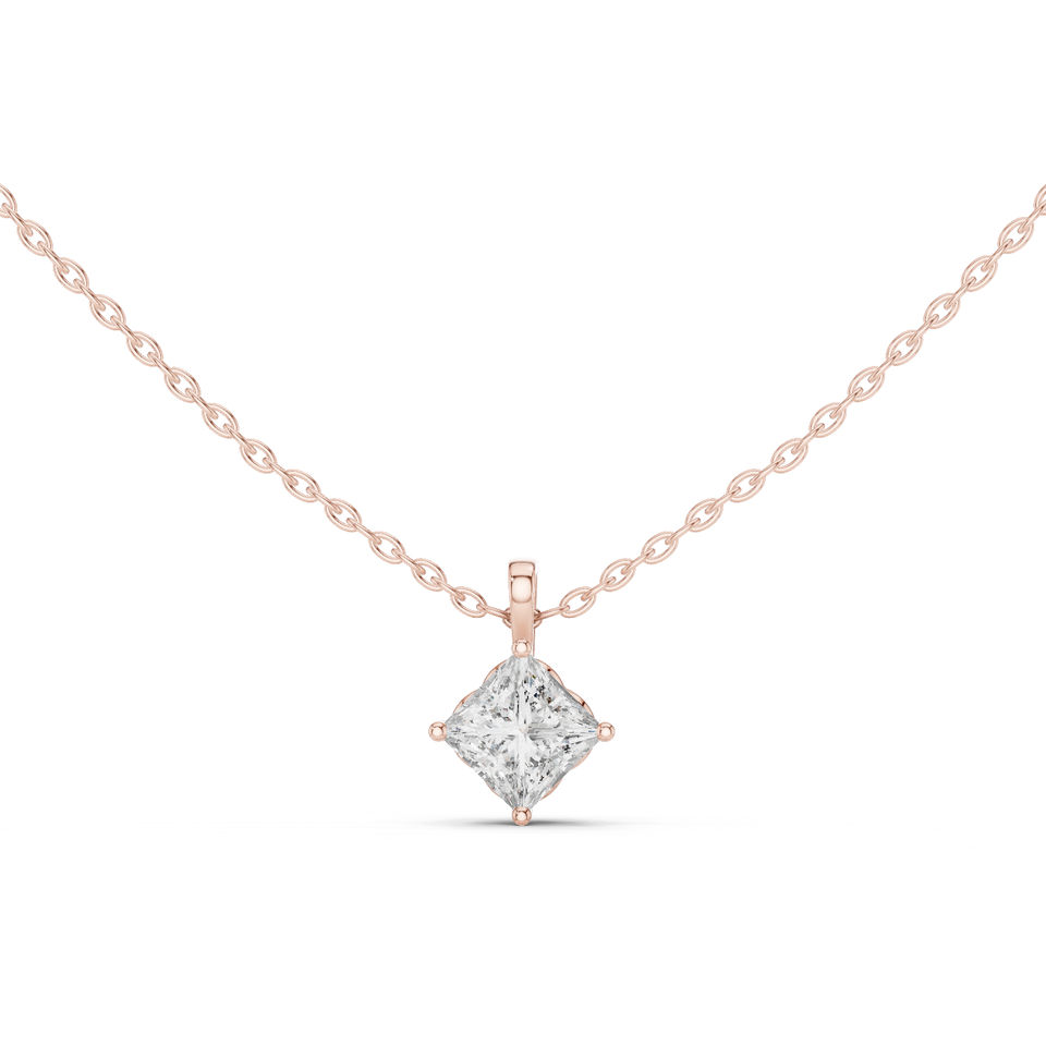 จี้เพชรเจ้าหญิงทองคำโรสโกลด์ 14K สำหรับผู้หญิง | ชุดลำลองสำหรับใส่ทุกวัน | เพชรที่เพิ่งเพาะเลี้ยง