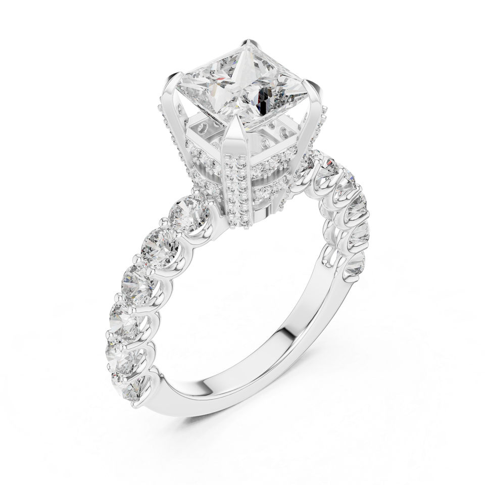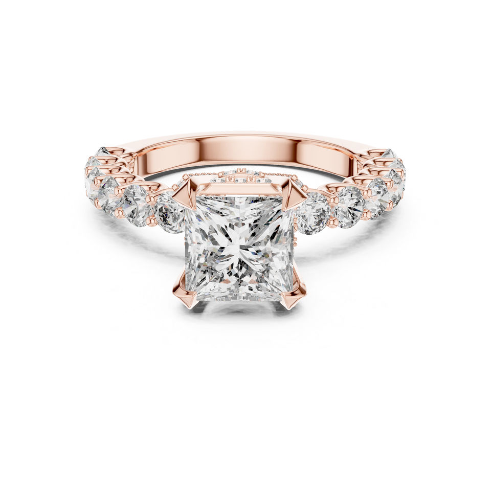 แหวนทองคำ 14K ประดับเพชรทรงกลมและทรงเจ้าหญิงที่เพาะเลี้ยงในห้องปฏิบัติการ | แหวนแต่งงาน | เพชรที่เพาะเลี้ยงใหม่