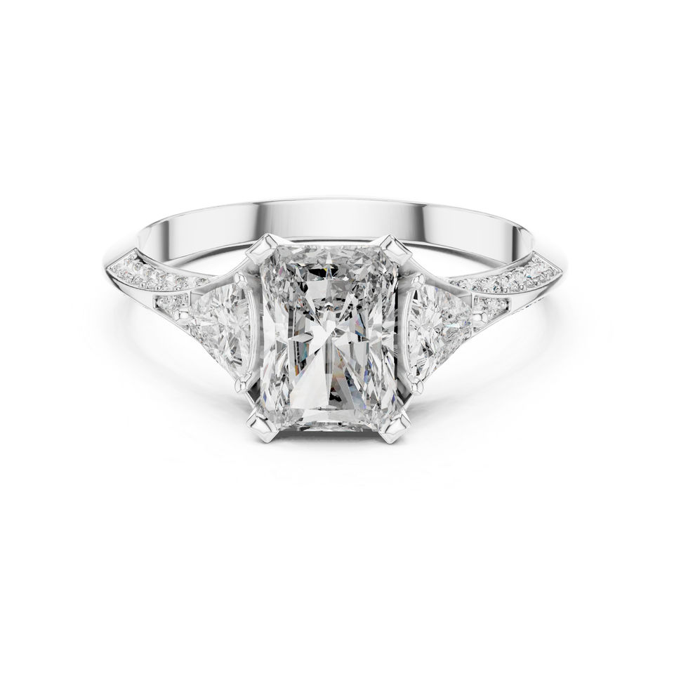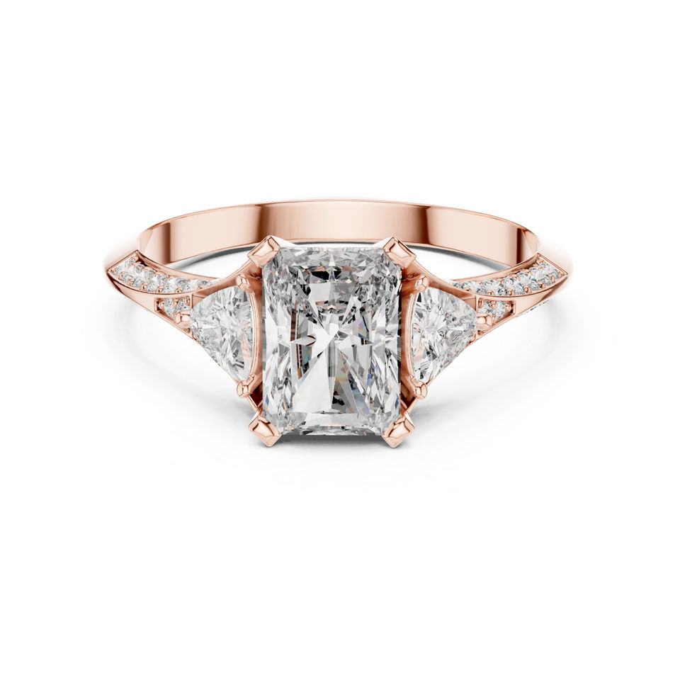 แหวนเพชรทรงตรีเหลี่ยมและทรงกลม 14K โรสโกลด์ ประดับเพชรแล็บโกรว์ สำหรับผู้หญิง | ชุดทำงาน | เพชรที่เพิ่งเพาะเลี้ยง