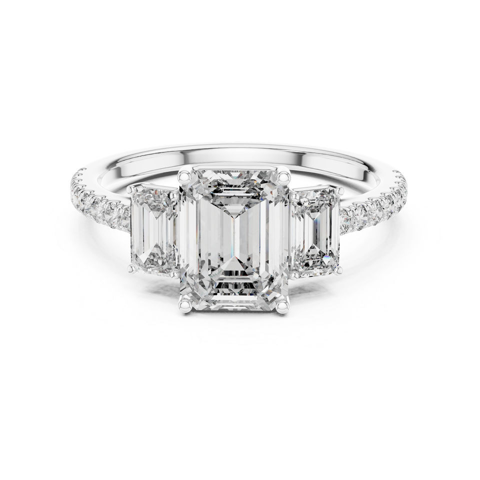 แหวนเพชรทรงหยดน้ำเคลือบทองคำขาว 14K ประดับเพชรเม็ดใหญ่ทรงเหลี่ยมมรกตสำหรับผู้หญิง | เครื่องประดับสำหรับงานหมั้น | 2.54 กะรัต ได้รับการรับรองจาก IGI หรูหรา