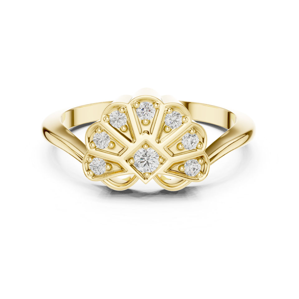 แหวนเพชรทรงกลมทองคำ 14K โรสโกลด์สำหรับผู้หญิง | ชุดลำลองสำหรับใส่ทุกวัน | เพชรที่เพิ่งเพาะเลี้ยง