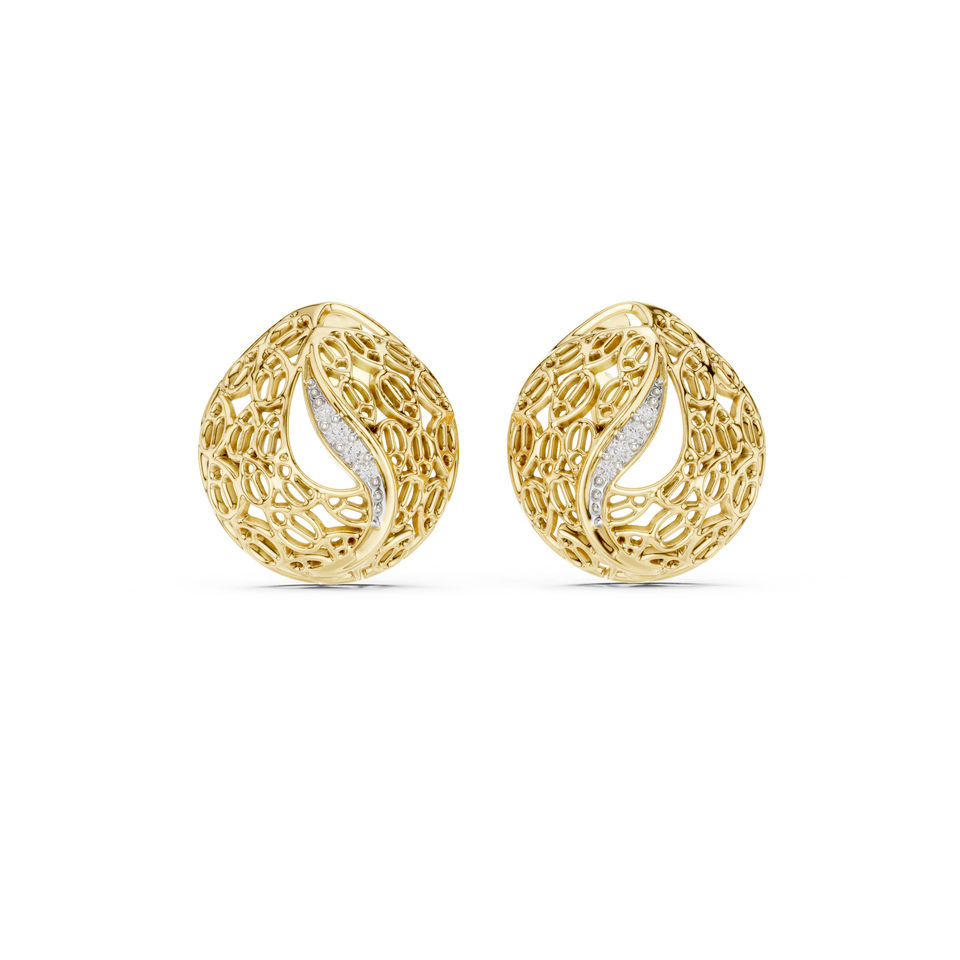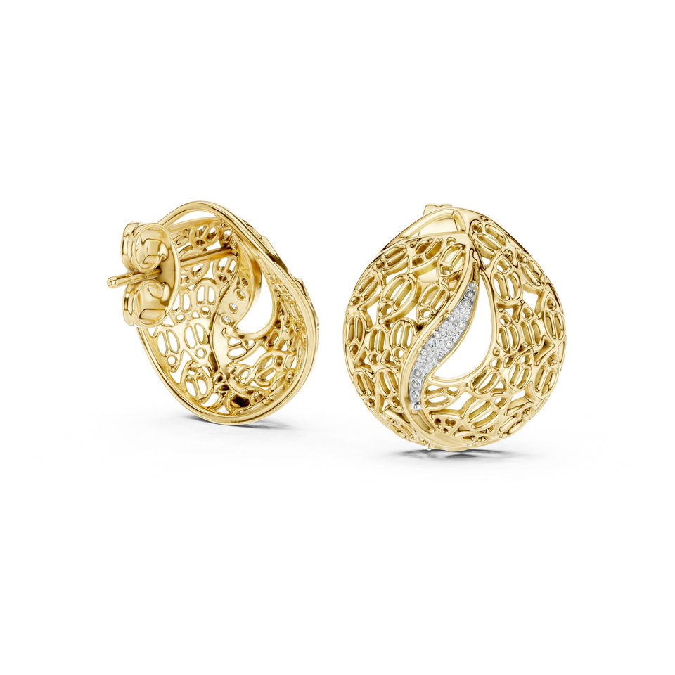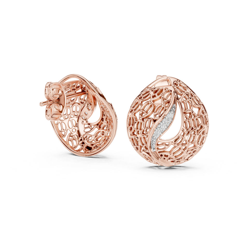 ต่างหูเพชรทรงกลมสีโรสโกลด์ 14K สำหรับผู้หญิง | ชุดเจ้าสาว | เพชรที่เพิ่งเพาะเลี้ยง