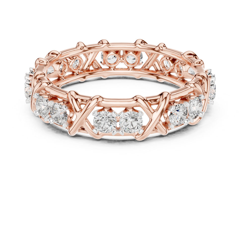 แหวนเพชรทรงกลมทองคำ 14K โรสโกลด์สำหรับผู้หญิง | ชุดสำหรับงานปาร์ตี้ | เพชรที่เพิ่งเพาะเลี้ยง
