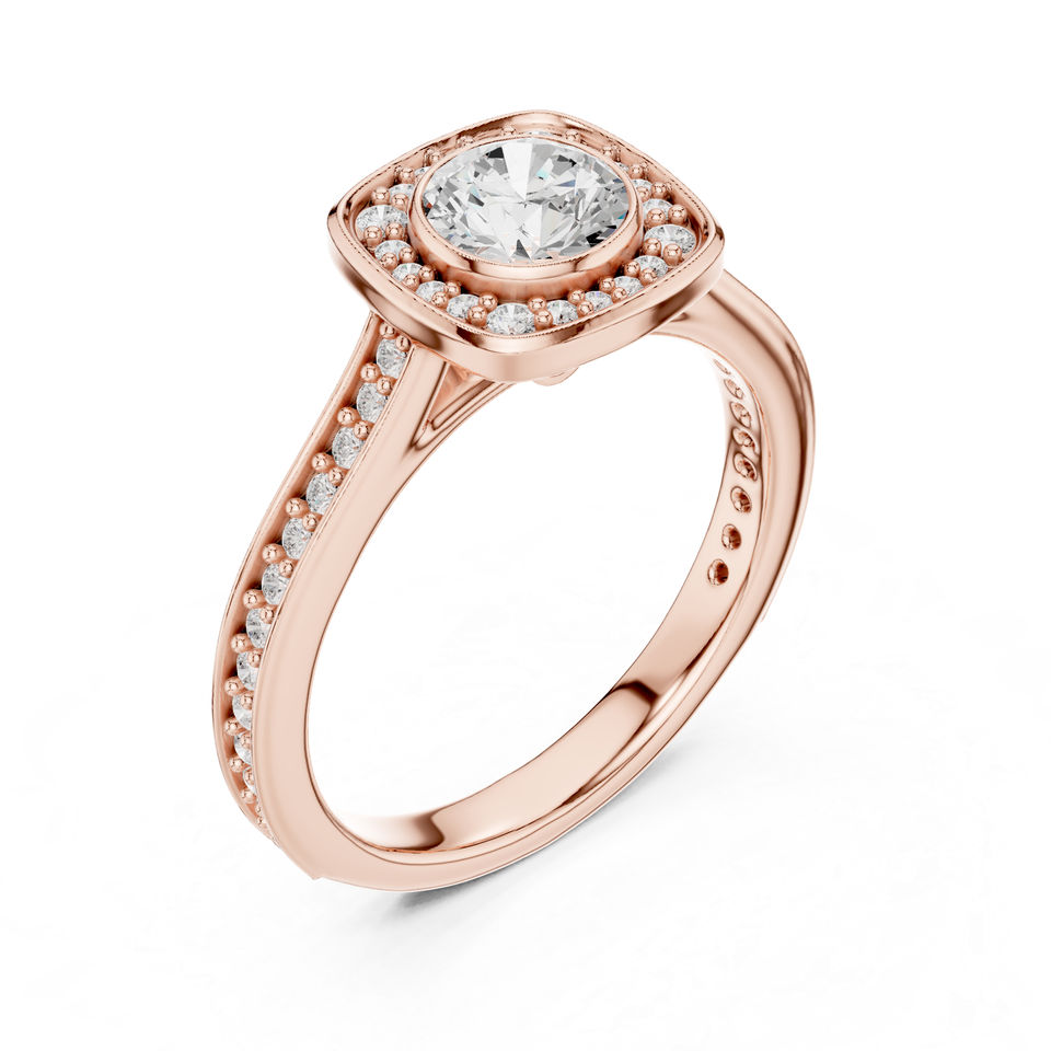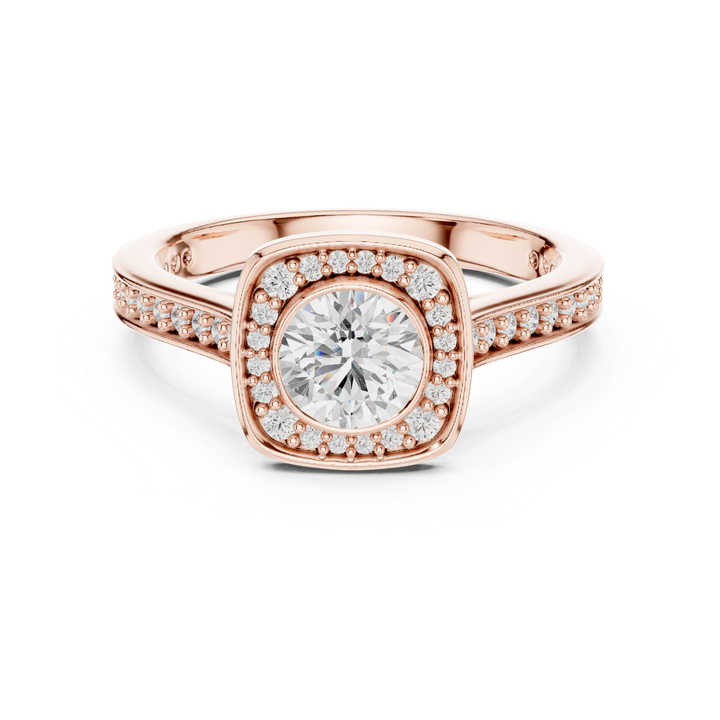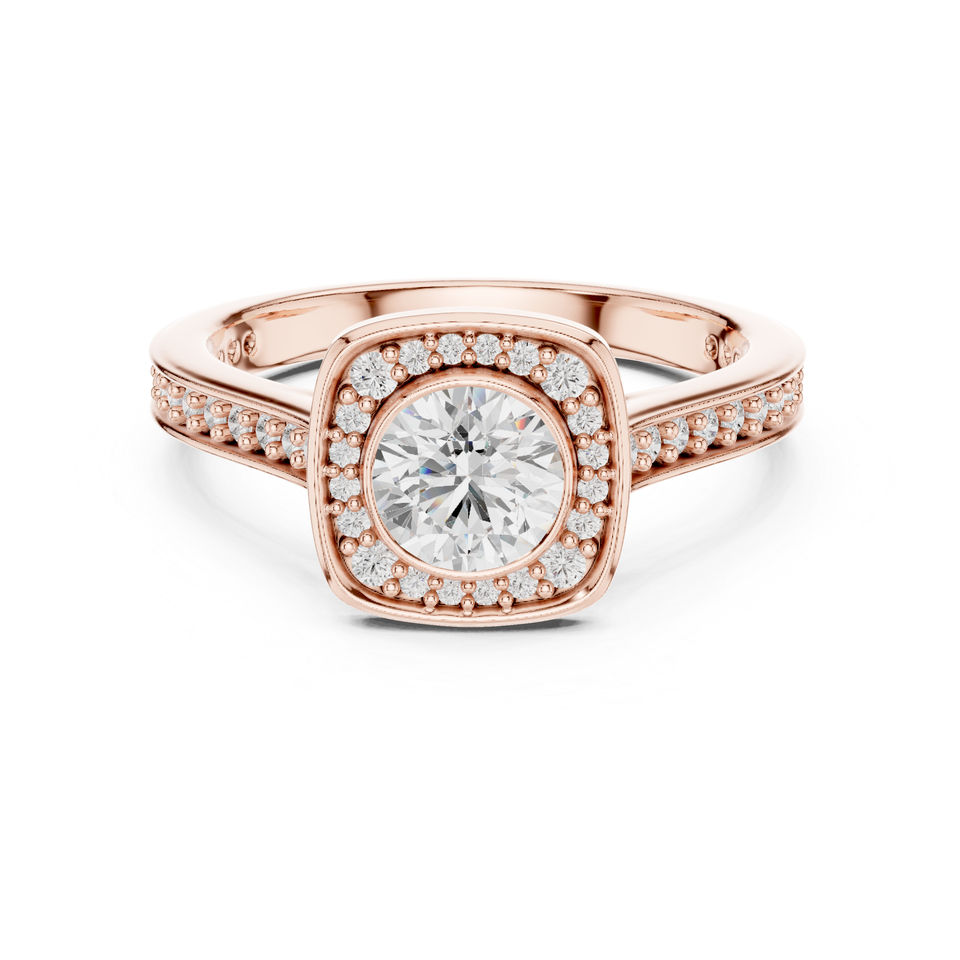 แหวนทองคำ 14K โรสโกลด์ ประดับเพชรทรงกลมเพาะเลี้ยงในห้องปฏิบัติการ สำหรับผู้หญิง สวมใส่ได้ทุกวัน | เพชรที่เพิ่งเพาะเลี้ยง