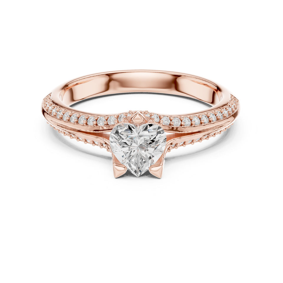 แหวนหมั้นเพชรทรงกลมทองคำโรสโกลด์ 14K สำหรับผู้หญิง | เพชรที่เพิ่งเพาะเลี้ยง