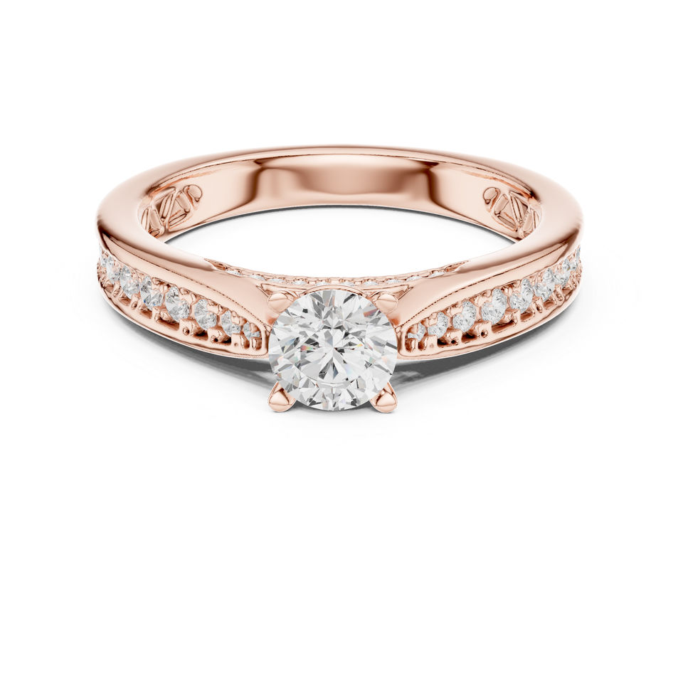 แหวนแต่งงานเพชรทรงกลมที่เพาะเลี้ยงในห้องปฏิบัติการ ทองคำ 14K สีโรสโกลด์สำหรับผู้หญิง | เพชรเพาะเลี้ยงใหม่