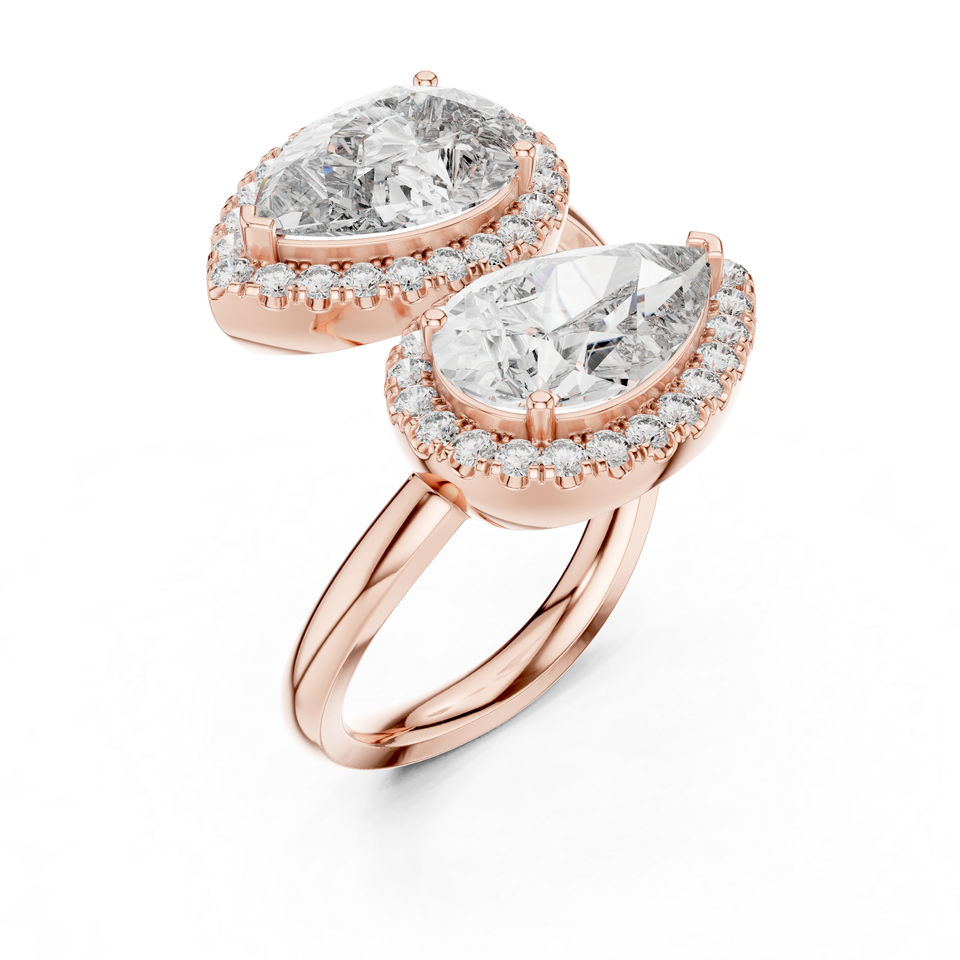 แหวนหมั้นเพชรทรงกลมและทรงหยดน้ำ 14K โรสโกลด์ สำหรับผู้หญิง | เพชรที่เพิ่งเพาะเลี้ยง