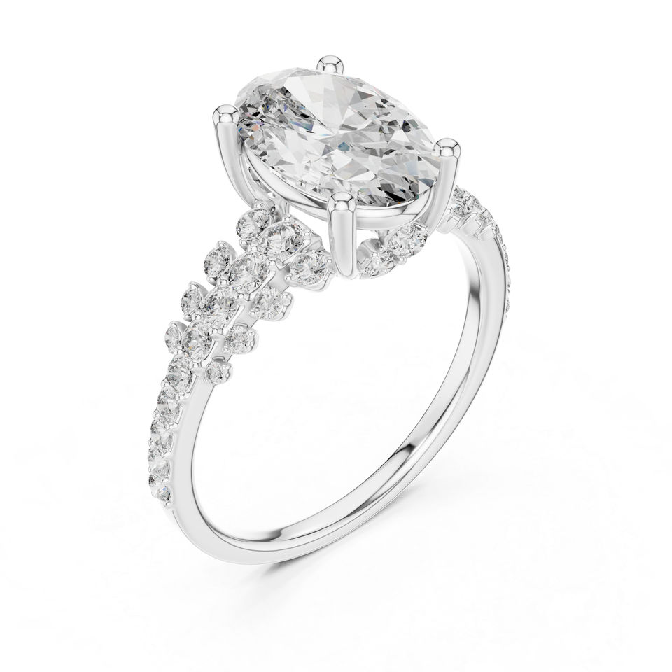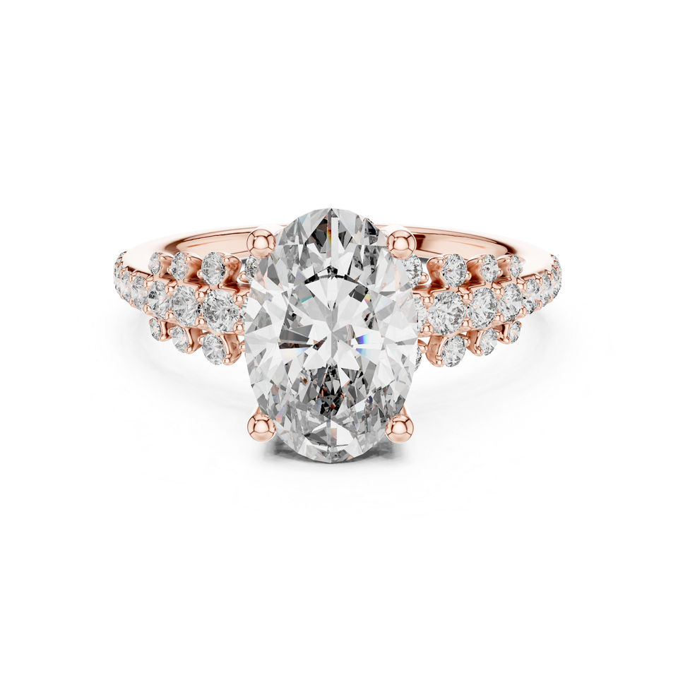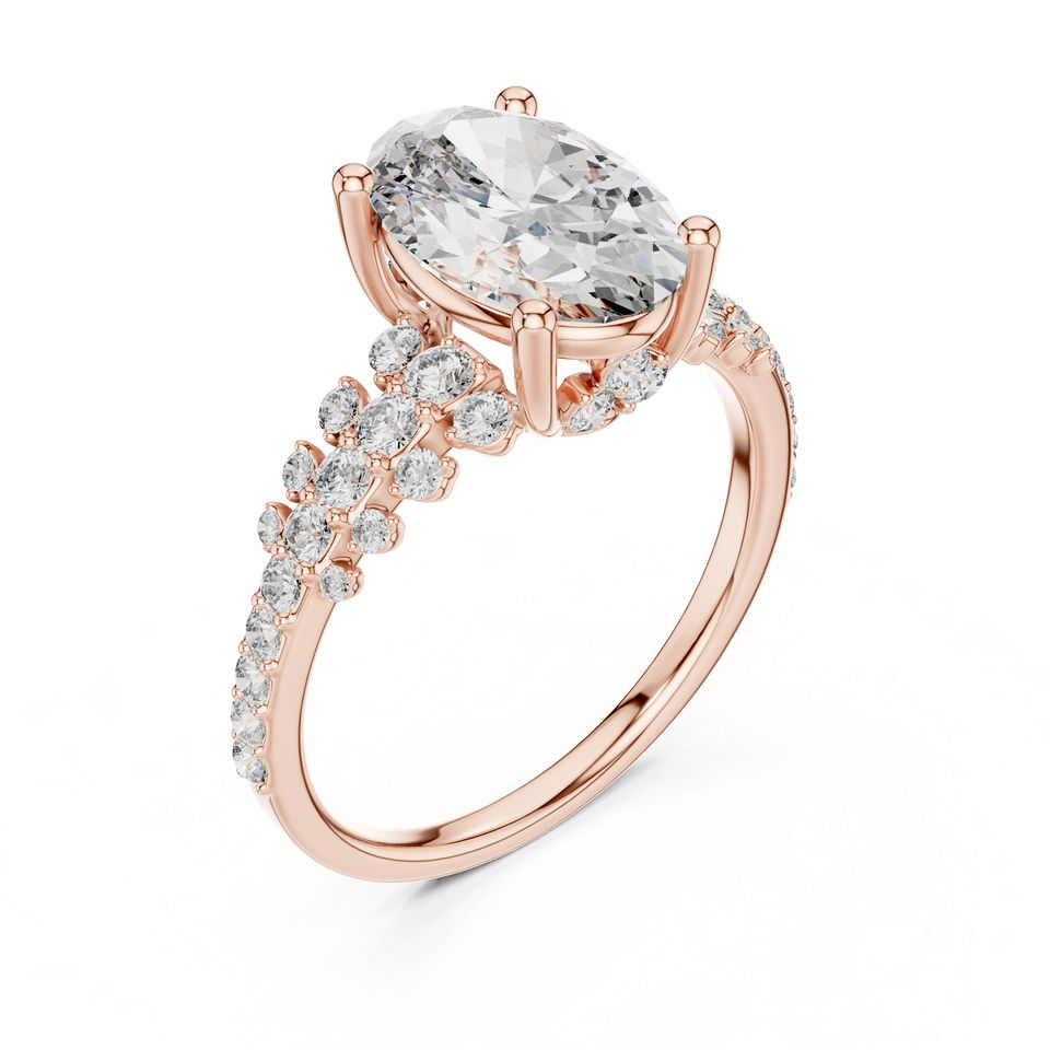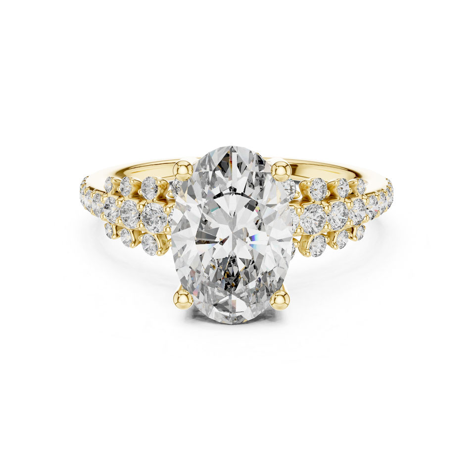 แหวนสตั๊ดทองคำ 14K ประดับเพชรทรงรีและทรงกลมที่เพาะเลี้ยงในห้องปฏิบัติการ | ชุดลำลองประจำวัน | เพชรที่เพาะเลี้ยงใหม่