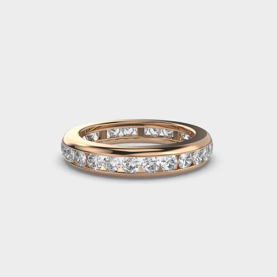 แหวนแต่งงานทองคำ 14K สีโรสโกลด์ ประดับเพชรทรงกลมแบบรักแร้ เพชรเลี้ยงในห้องปฏิบัติการ แบบฝังเต็มวง งานฝีมือชั้นดีสำหรับผู้หญิง สำหรับงานหมั้น