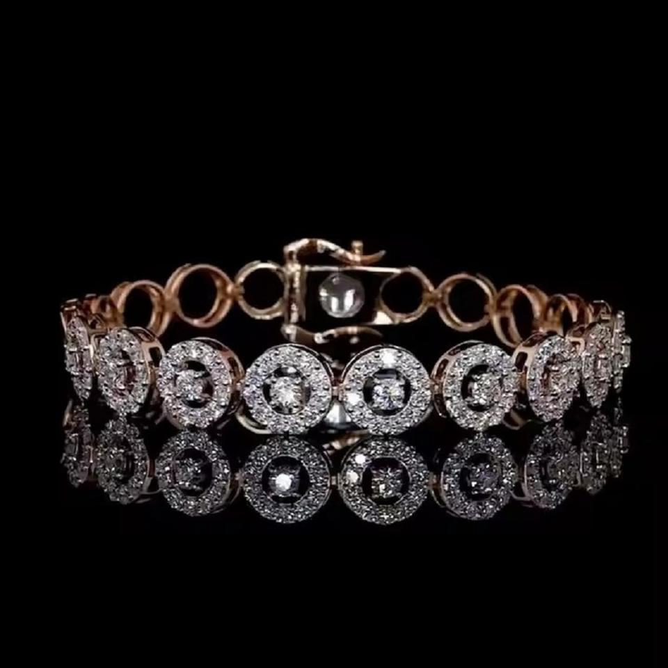 สร้อยข้อมือเพชรเม็ดกลมสีโรสโกลด์14K เครื่องประดับเพชรมอยส์ซอไนต์สำหรับเป็นของขวัญวันเกิด