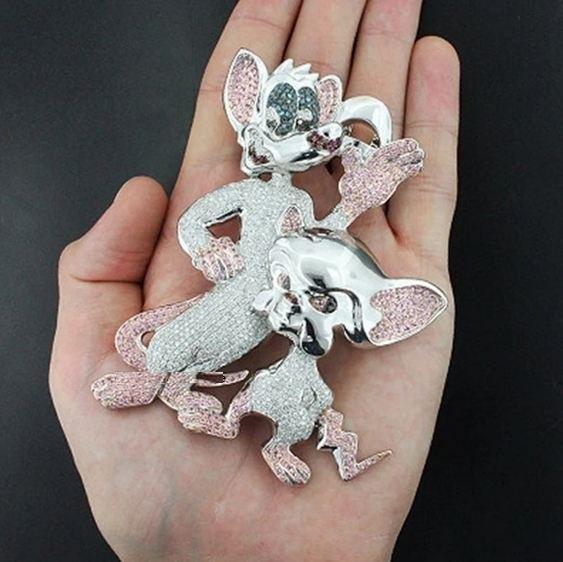 จี้รูปนกฮูกประดับเพชร 3 กะรัต ชุบเงิน 14K ได้รับการรับรองจาก IGI สไตล์คลาสสิก 'The Brain' การ์ตูนเด็ก ศาสนาฮินดู