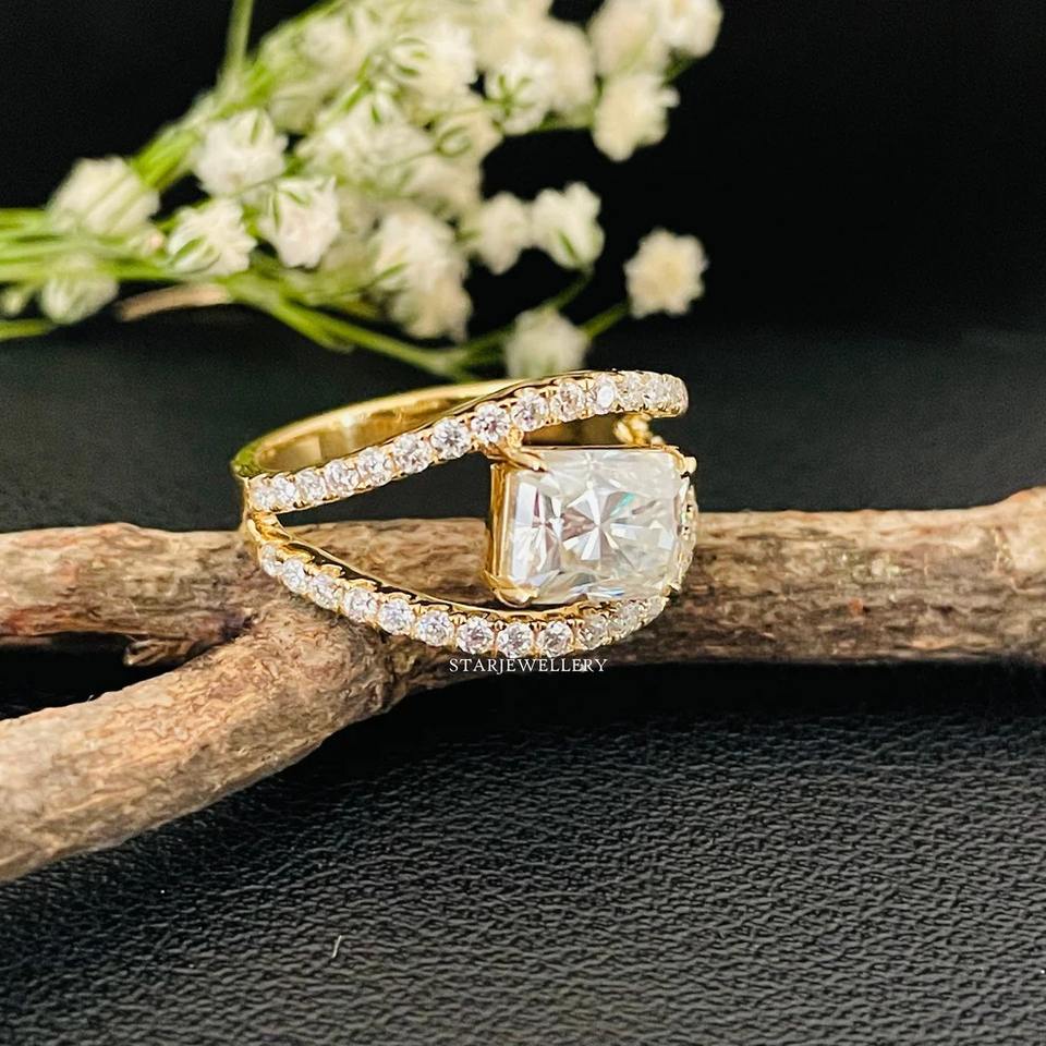 14K แหวนเพชรโมอิส1.75ไลท์สีทองใสสำหรับงานหมั้นเพชรโมอิสซาไนต์