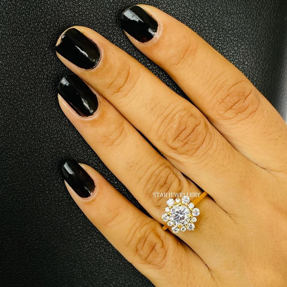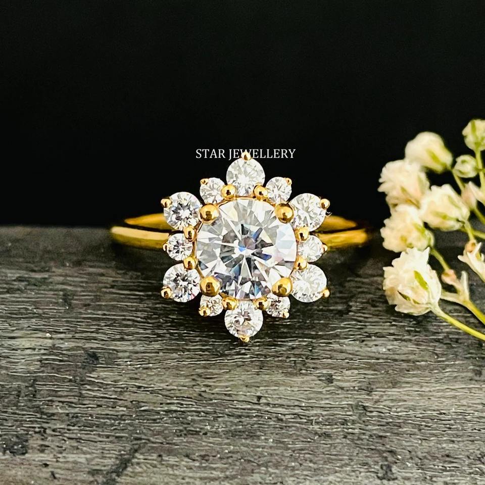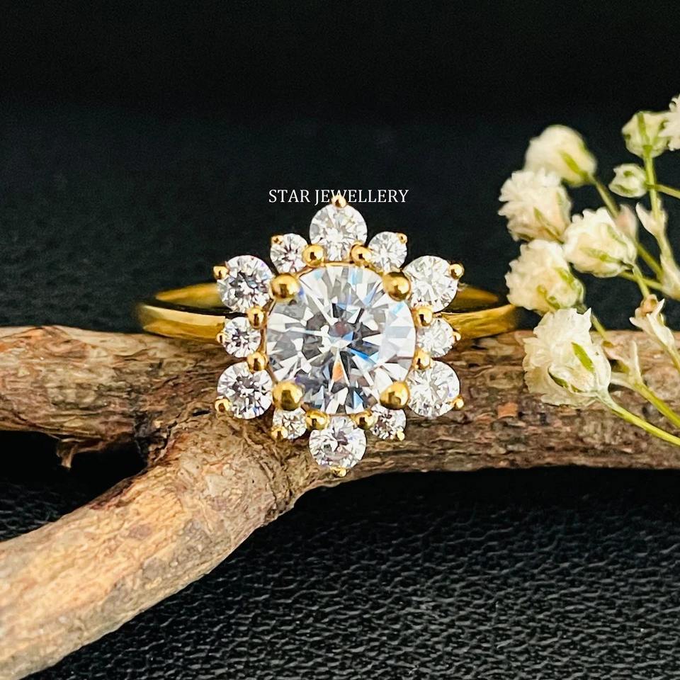 แหวนเพชร14K CVD สีทอง1กะรัตแหวนแต่งงานเดี่ยวประดับเพชรแหวนหรูได้รับการรับรองจากคริสเตียน