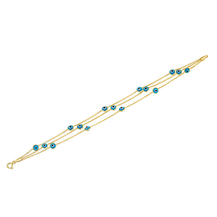 สร้อยข้อมือทอง14K แบบ3ชั้น,กำไลข้อมือป้องกันแสงจากตุรกีตาปีศาจฟ้า