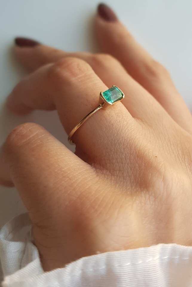 แหวนทองคำแท้ 14K ประดับมรกตทรง Asscher Cut แบบฝังขอบเพชร ของขวัญสำหรับงานแต่งงาน งานหมั้น หรืองานเลี้ยง สำหรับทั้งผู้หญิงและผู้ชาย ประจำเดือนพฤษภาคม