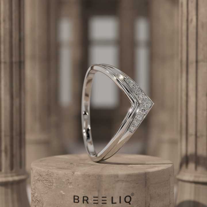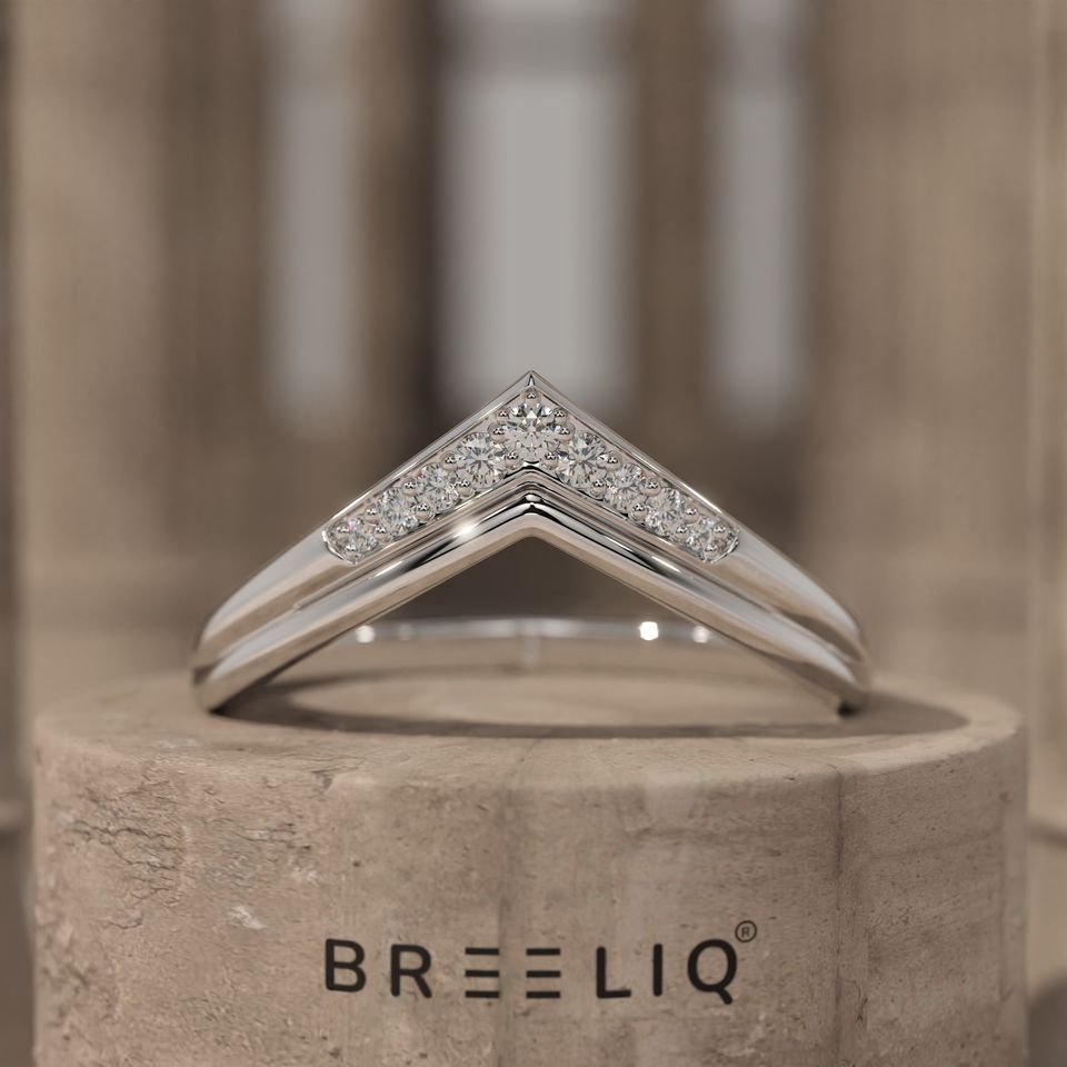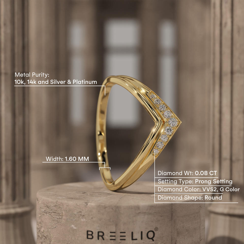 แหวนแต่งงานแบบซ้อนได้สำหรับผู้หญิง ทำจากทองคำแท้ 14K รูปทรงตัววีคู่ ประดับเพชรเลี้ยงในห้องปฏิบัติการ