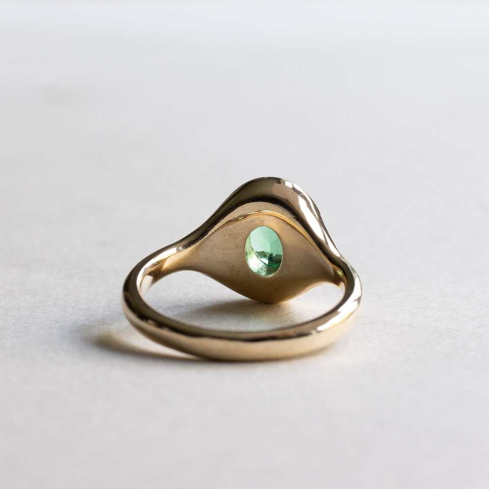 แหวนตราประทับแต่งงานทองคำแท้ 14K ประดับมรกตและเพชรสามเม็ด เครื่องประดับชั้นดี