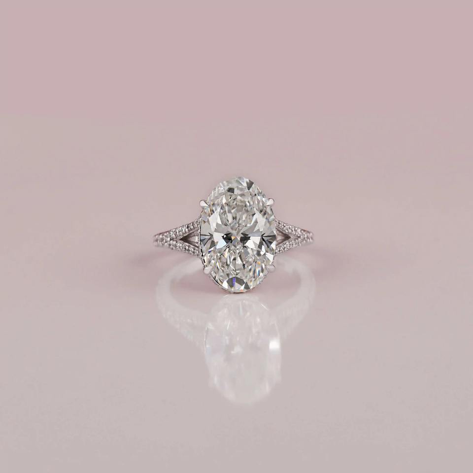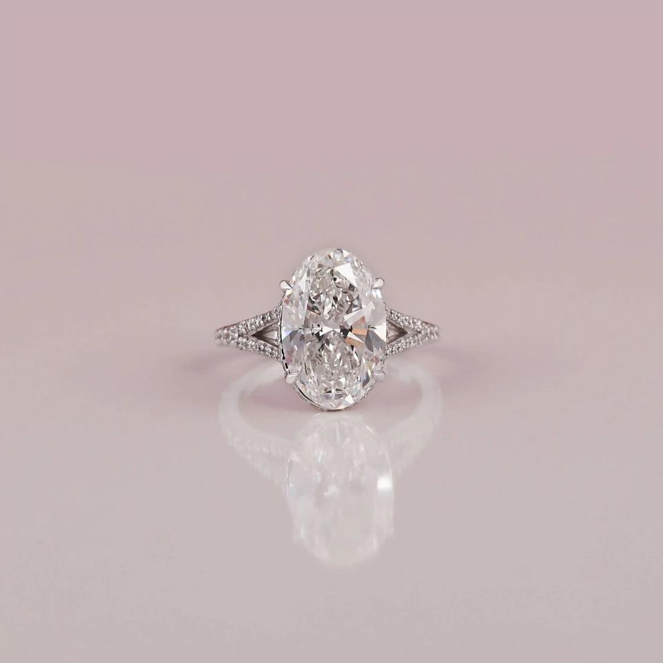 แหวนหมั้นทองคำแท้14K การตั้งค่าที่ซ่อนอยู่สไตล์คลาสสิกเพชรที่เน้นการตัดวงรีห้องปฏิบัติการสร้างเพชรได้รับการรับรอง IGI
