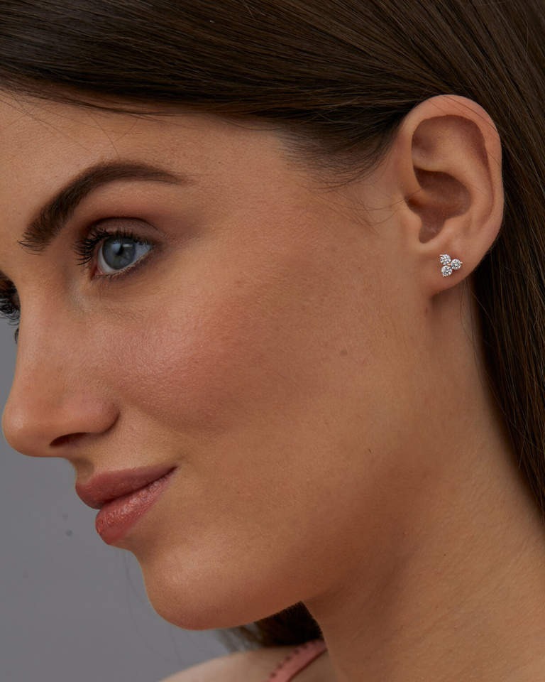 ต่างหูเม็ดกลมสีทอง14K แข็งคุณภาพดีสามเม็ดเพชรธรรมชาติของขวัญสำหรับผู้หญิง