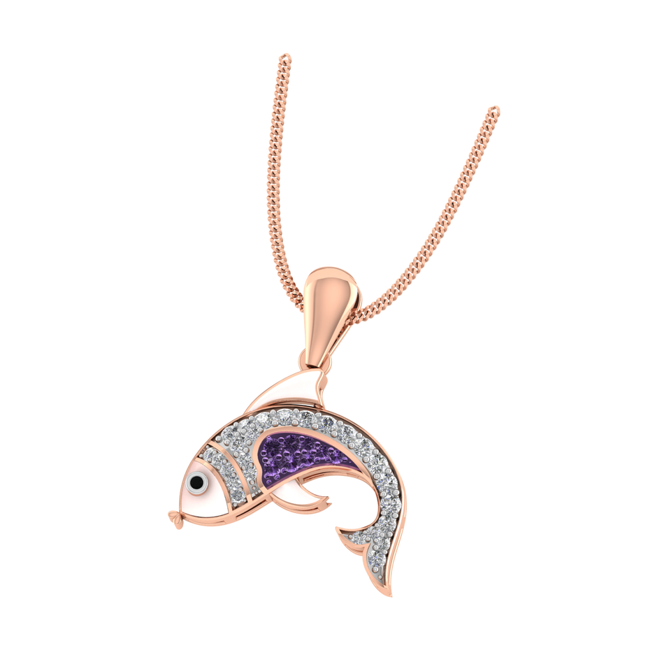 จี้รูปปลาสีทอง14K หินสีม่วงเครื่องประดับสวยงามน่ารักสำหรับเด็กผู้หญิงห้องปฏิบัติการปลูกเพชรอินเดีย IGI