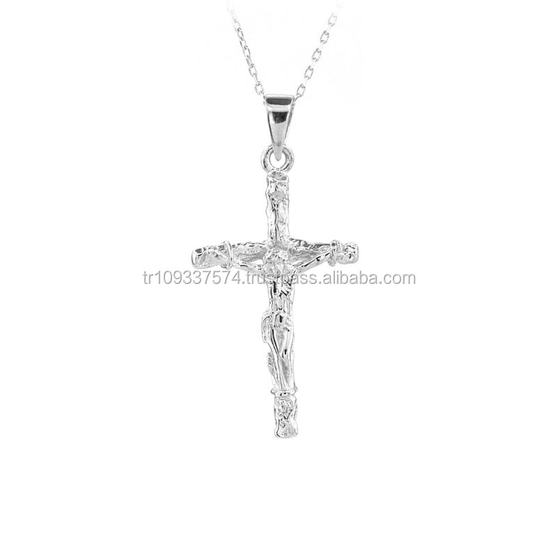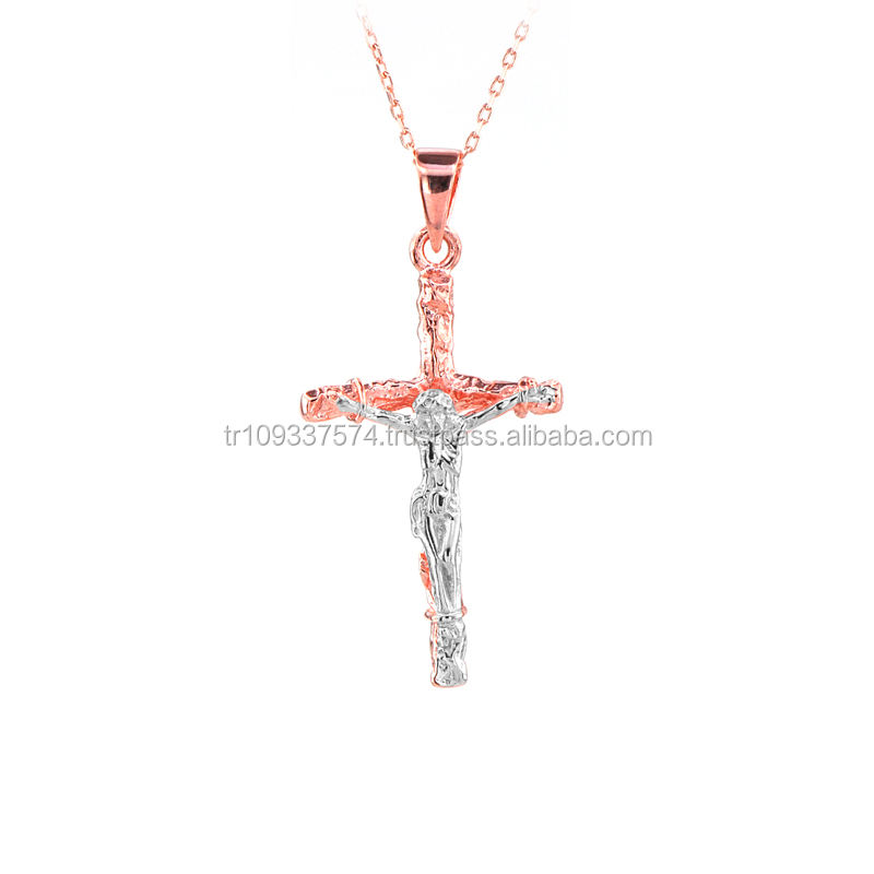 สร้อยคอประดับคริสตัลไม้กางเขนสีทอง14K สำหรับผู้หญิงทำจากไก่งวง