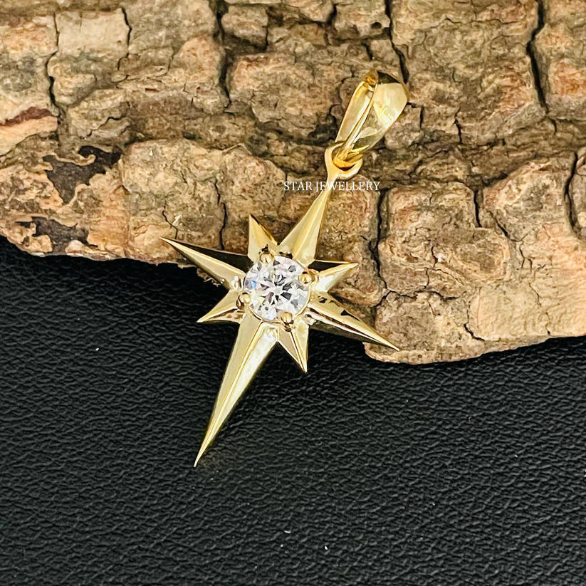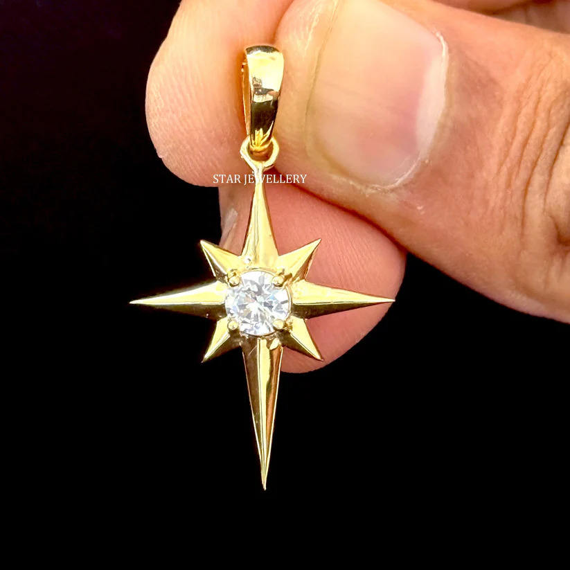 เครื่องประดับเพชรที่ปลูกในห้องปฏิบัติการทองคำ14K ดาวเหนือจี้เพชรชั้นดี