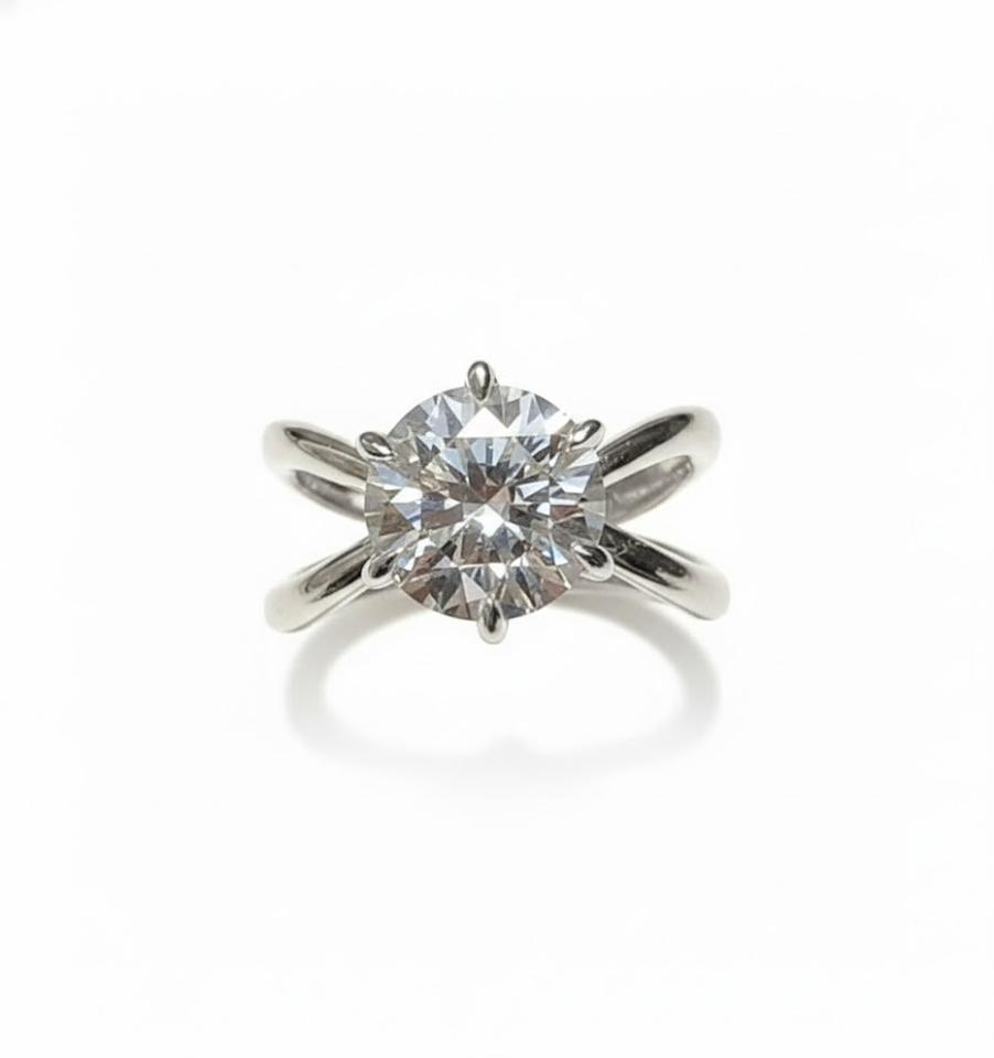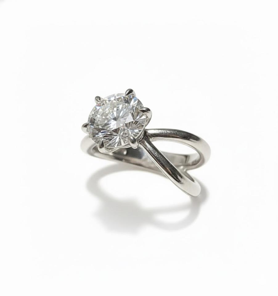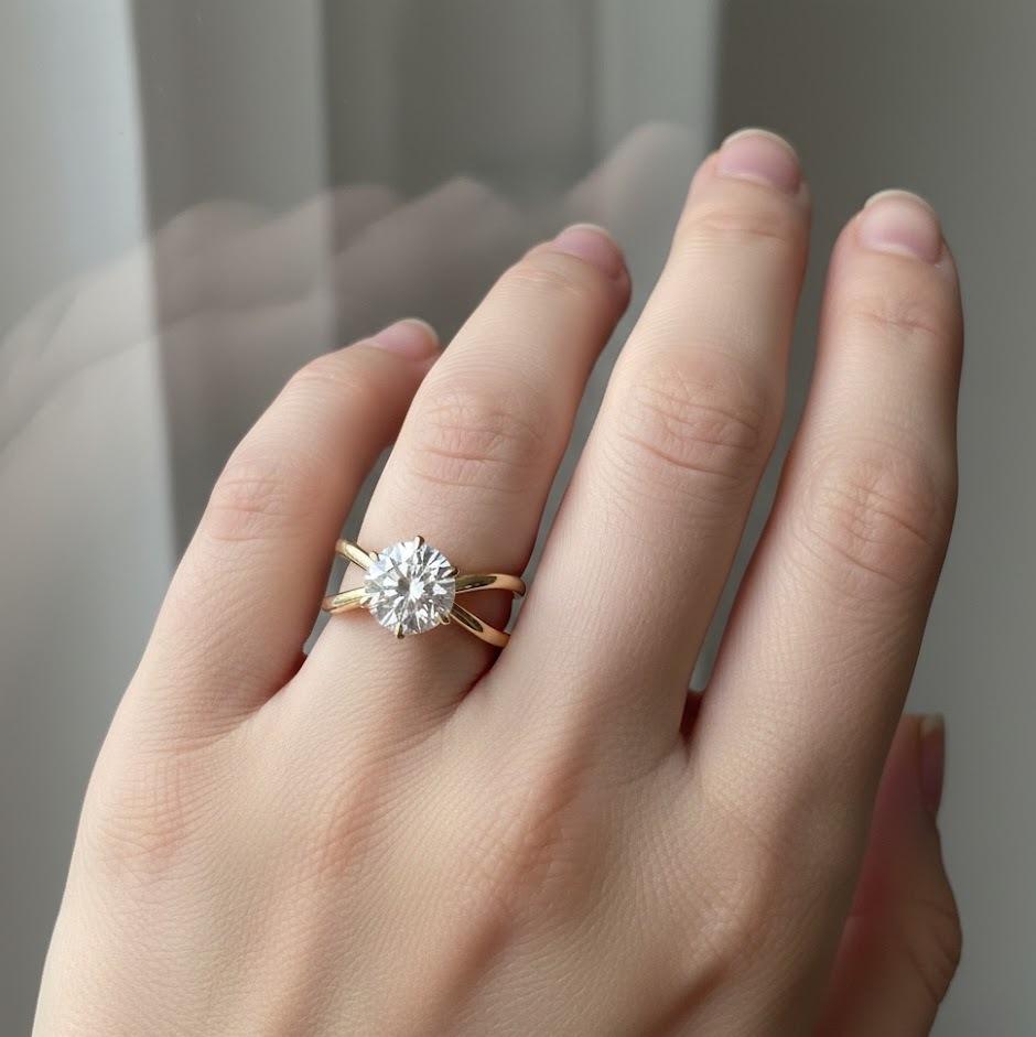 แหวนหมั้นเพชรทรงกลมแบบไขว้ 14K ทองคำแท้ เพชรเพาะเลี้ยงสี DEF ความสะอาดระดับ VS VVS ได้รับการรับรองจาก IGI ดีไซน์แบบแยกก้าน