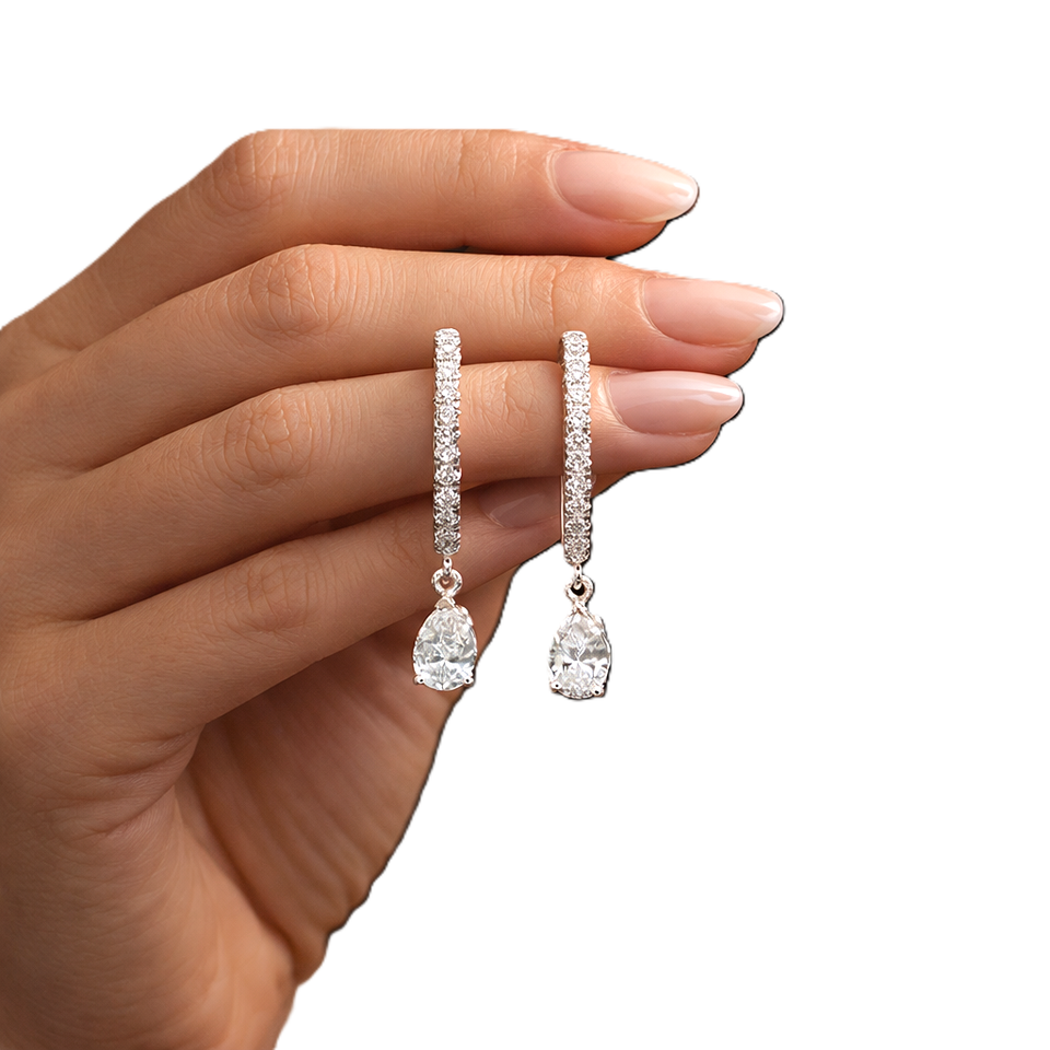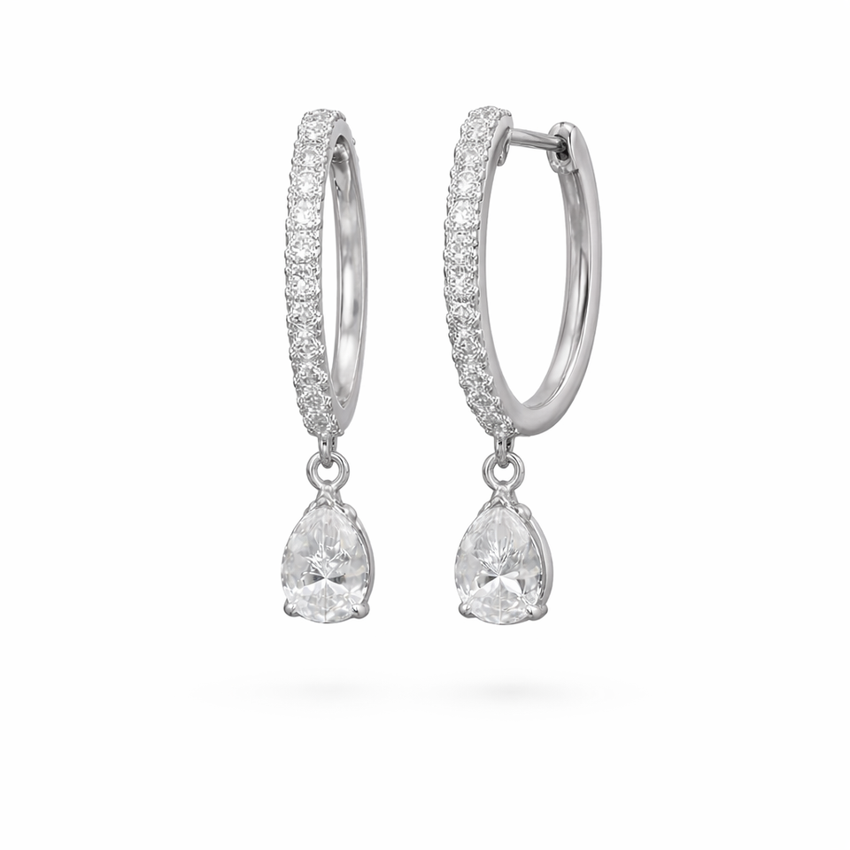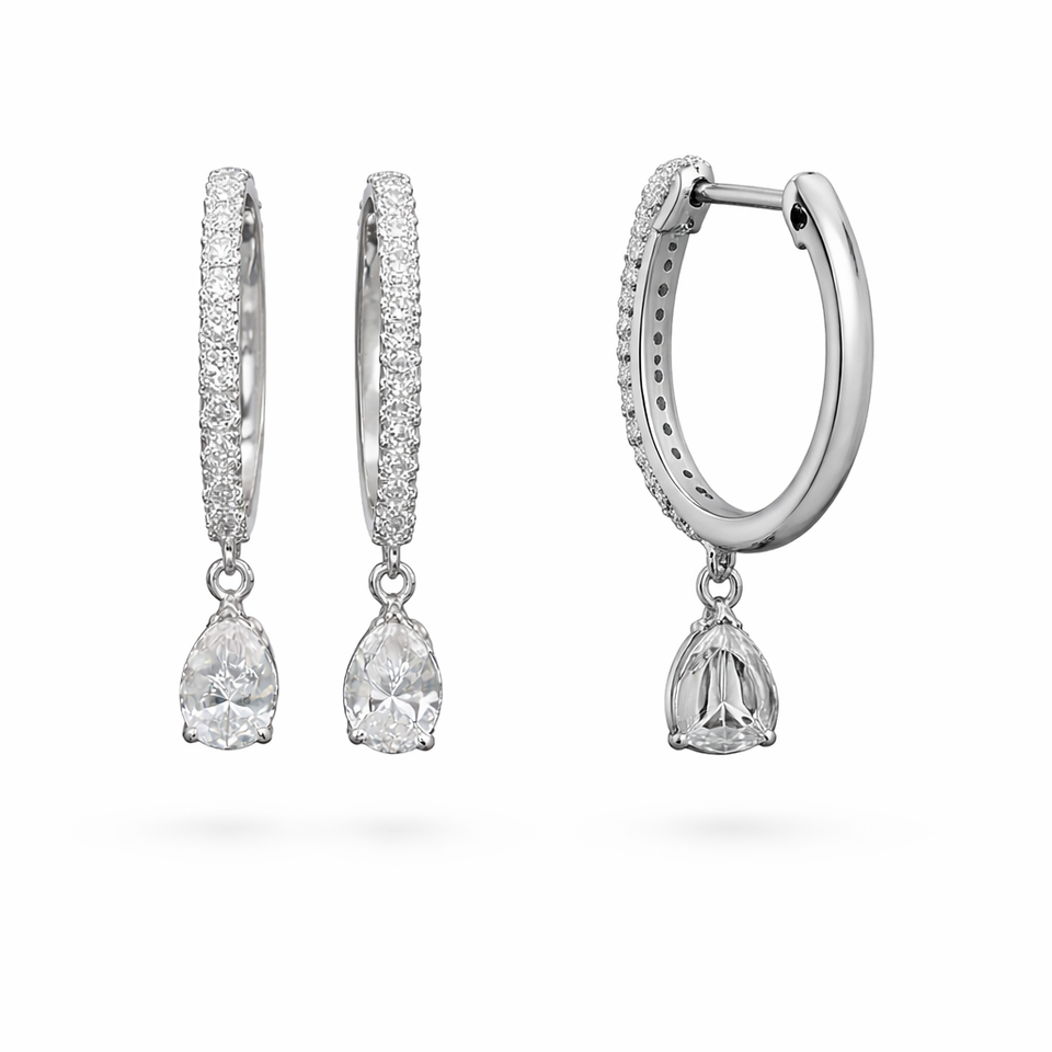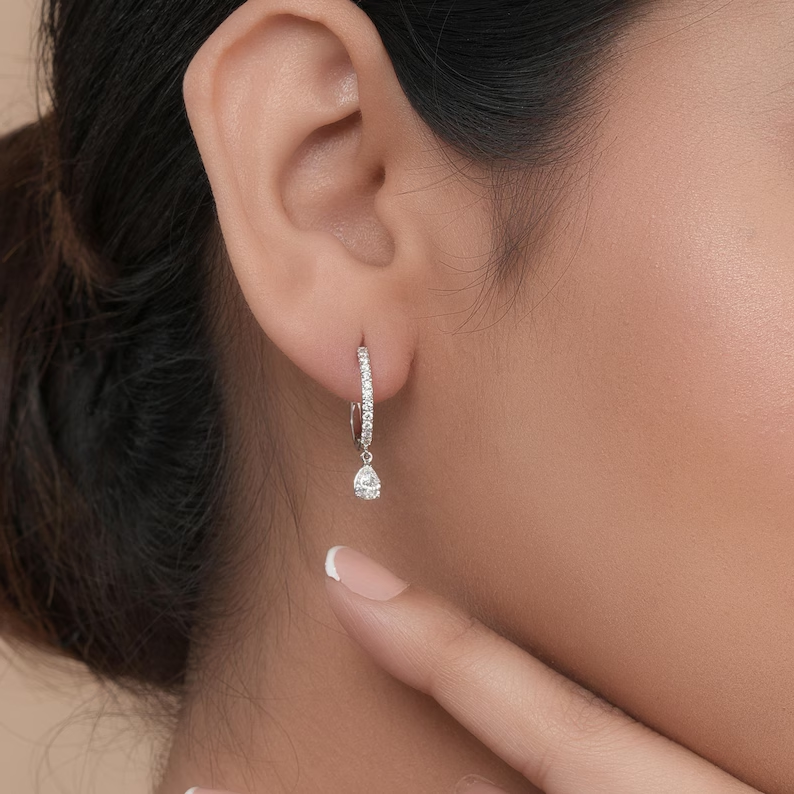 ต่างหูเพชรทรงหยดน้ำ 14K ทองคำแท้ เพชรเพาะเลี้ยง 0.68 กะรัต รูปทรงกลมและหยดน้ำ สี DEF ความสะอาดระดับ VS VVS เครื่องประดับเพชร