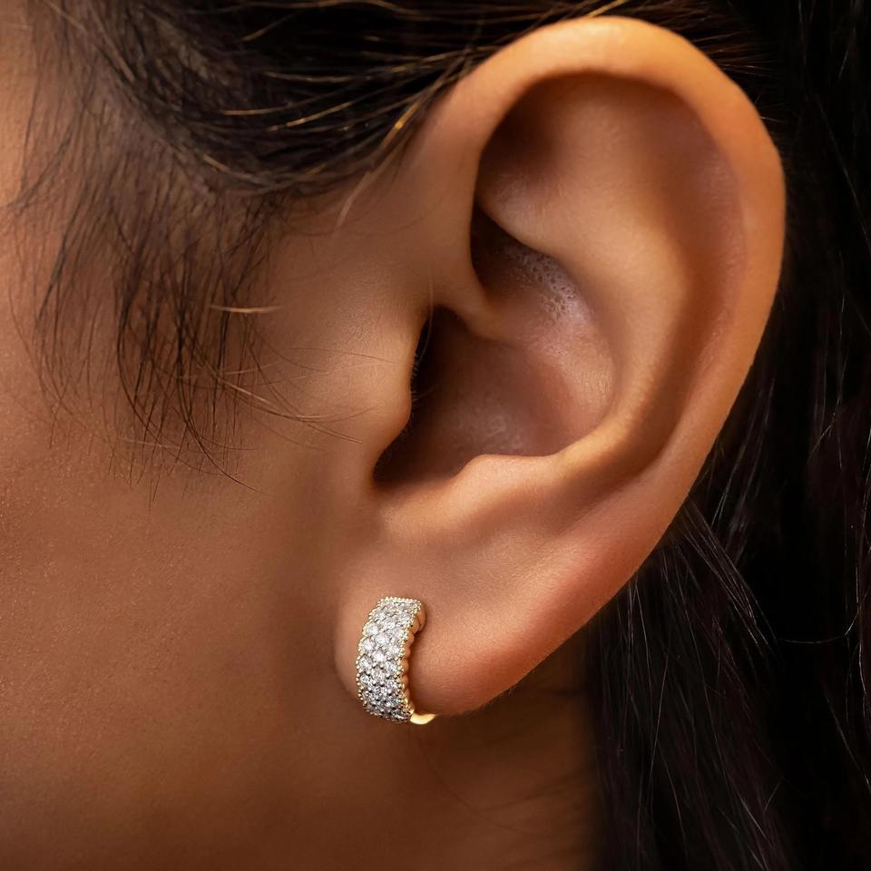 ต่างหูห่วงแบบ Huggie ประดับเพชรแล็บโกรว์ 14K ทองคำแท้ 48 เม็ด ดีไซน์หรูหรา เหมาะเป็นของขวัญสำหรับงานปาร์ตี้ สำหรับผู้หญิง