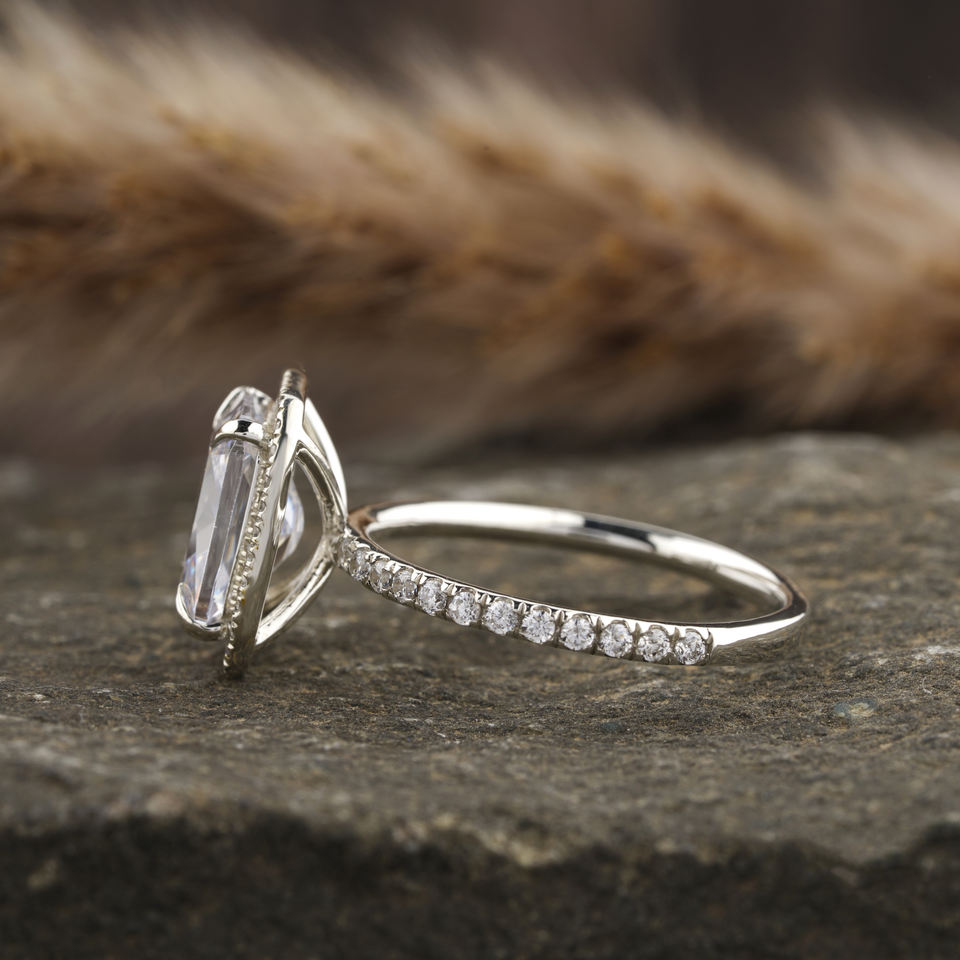 แหวนหมั้นเพชรทรงรัศมี 14K ทองคำแท้ เพชรเพาะเลี้ยง ดีไซน์หรูหราทันสมัย ฝังแบบหนามเตย ออกแบบได้ตามต้องการ พร้อมใบรับรอง IGI ของขวัญสุดพิเศษ