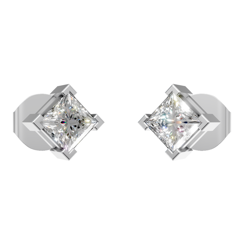 ต่างหูทองคำแท้ 14K ประดับเพชรโมอิสซาไนต์ทรงเจ้าหญิง 1 กะรัต 4.3 มม. ตัวเรือนแบบสี่ขา ระดับความสะอาด VVS1 สี D ของขวัญสำหรับผู้หญิง เครื่องประดับ