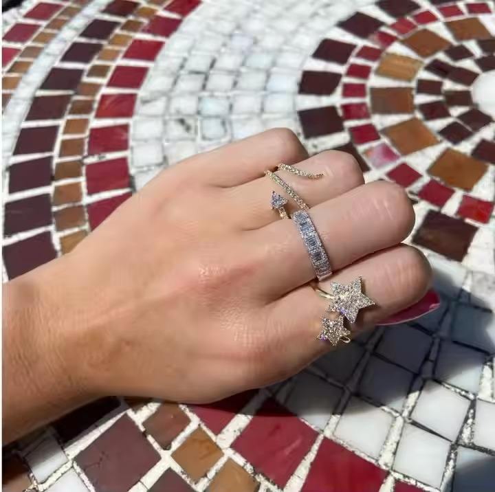 แหวนรูปดาวแบบเปิดสีทอง14K แหวนแต่งงานสำหรับงานหมั้นรูปท้องฟ้าประดับเพชรสำหรับห้องแล็บของขวัญเครื่องประดับสุดหรู