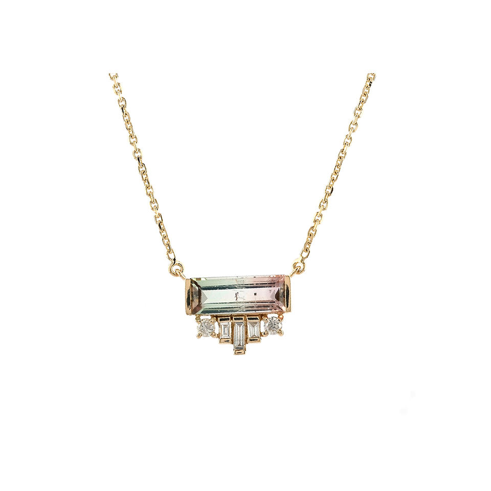 14K สร้อยคอจี้ทองแข็งแตงโมทัวร์มาลีนสำหรับผู้หญิงผลิตใน10K/18K