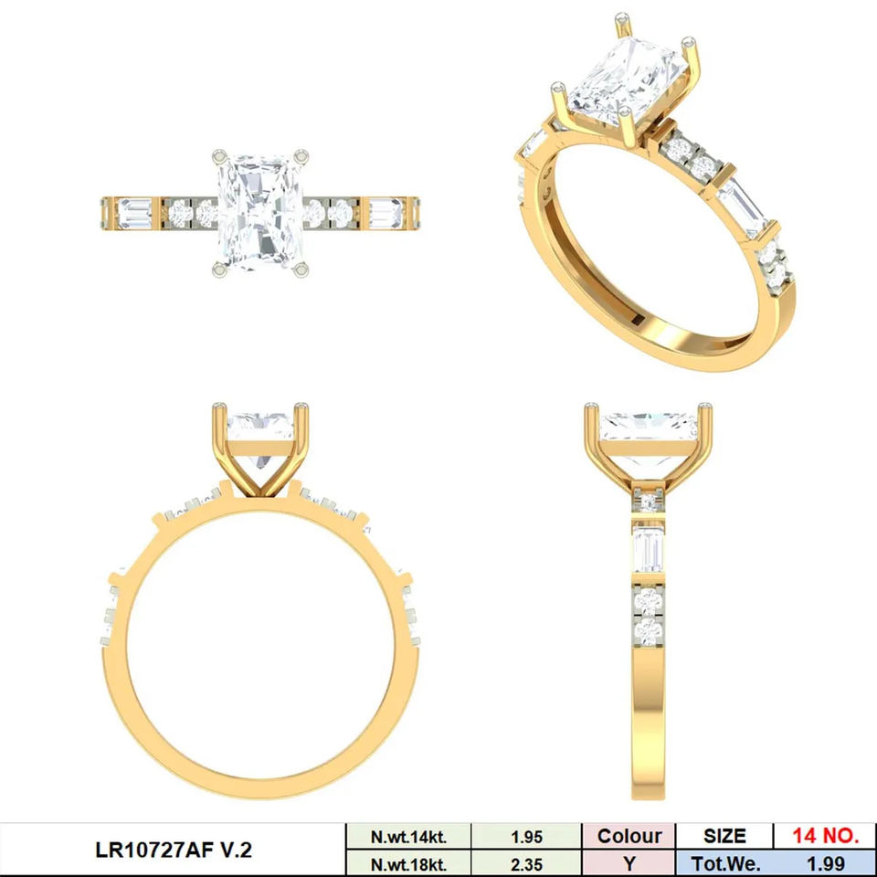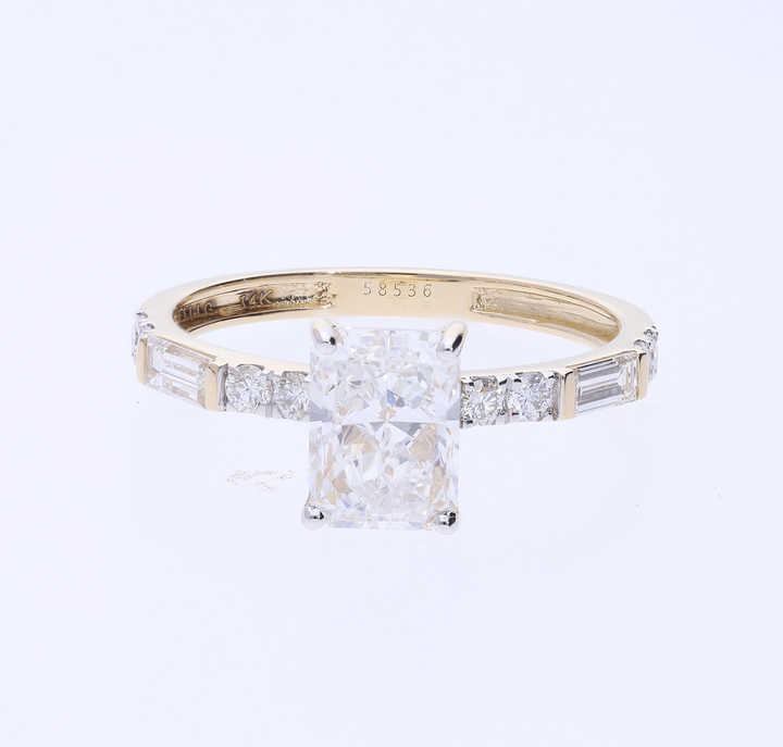 แหวนหมั้นเพชรทรงเรเดียนท์คัท 14K ทองคำแท้ ประดับเพชรทรงบาแกตต์ด้านข้าง ชุบโรเดียม รับรองโดย IGI