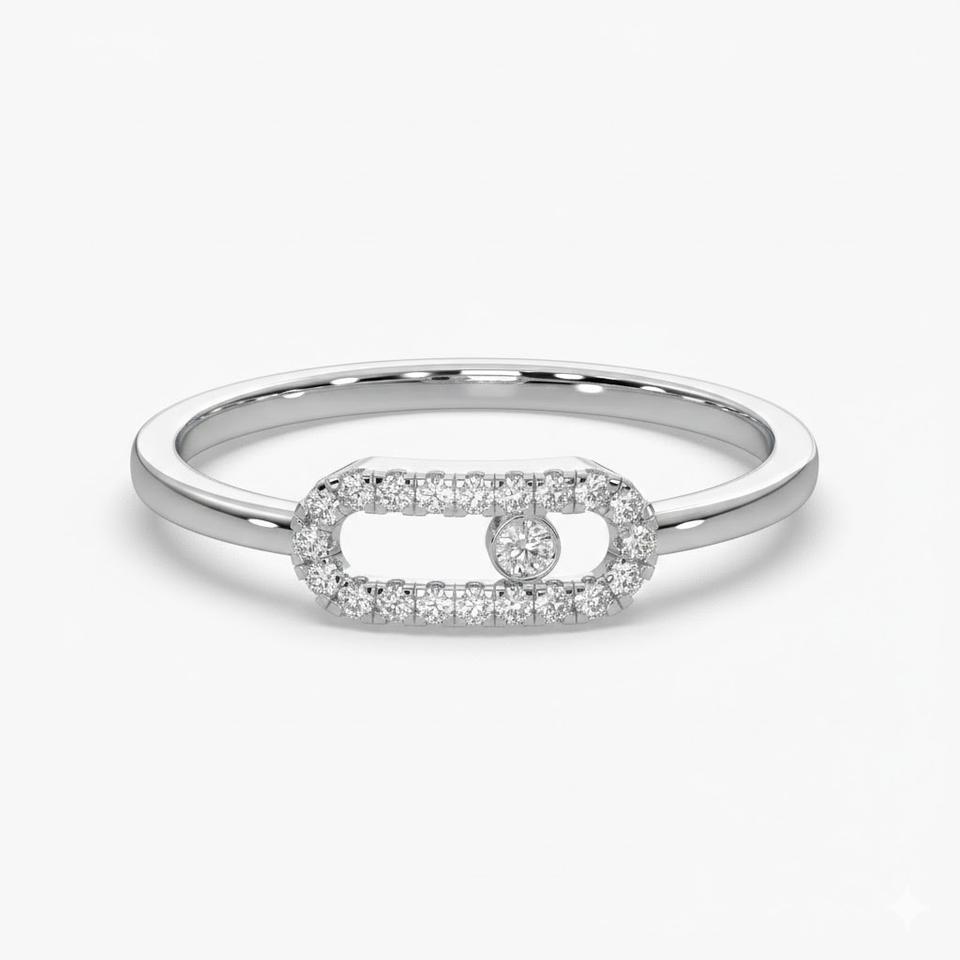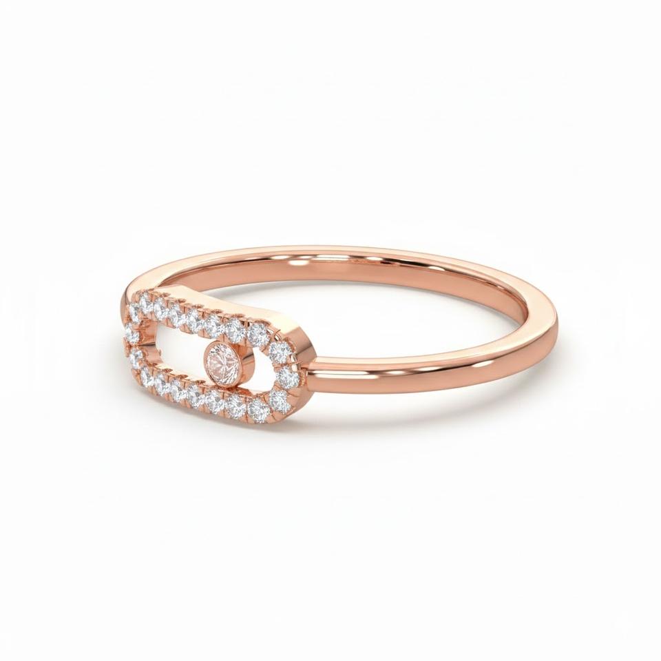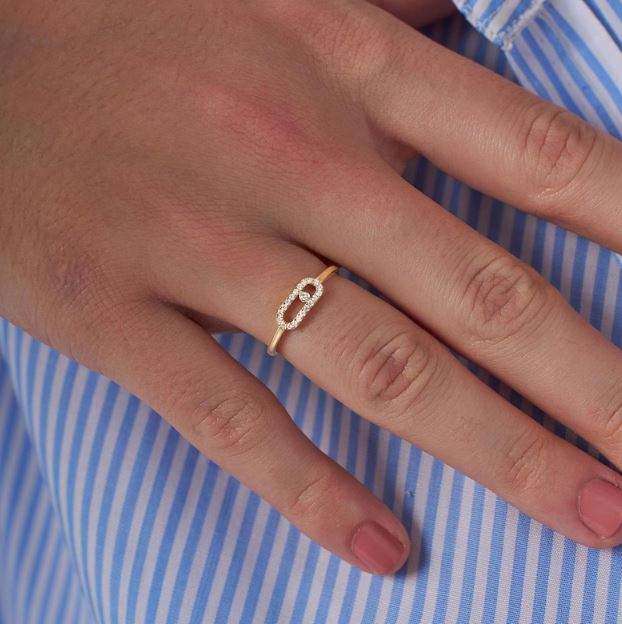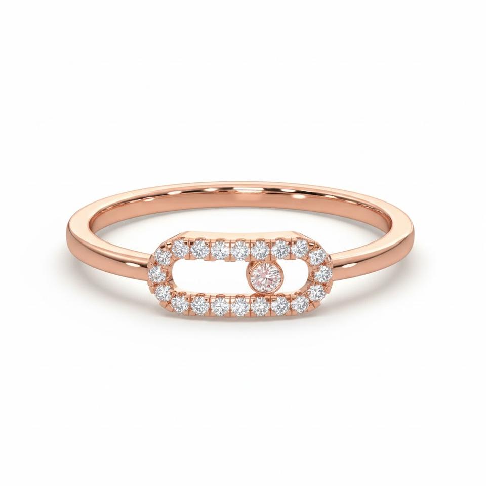 แหวนทองคำแท้ 14K แบบซ้อนได้ ประดับเพชรทรงกลม เพชรเลี้ยงในห้องปฏิบัติการ แหวนแต่งงานสำหรับผู้หญิง แหวนเพชรแบบมินิมอลชุบทองรูปทรงคลิปหนีบกระดาษ