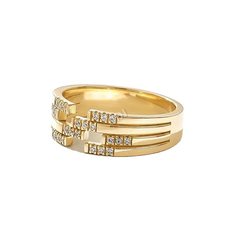 14K สายรัดซิการ์หนาสีทองแข็งดีไซน์ไม่เหมือนใครแหวนแต่งงานประดับเพชรปลูกในห้องแล็บขนาดเล็กดีไซน์เนอร์ทันสมัยปาร์ตี้ VVS