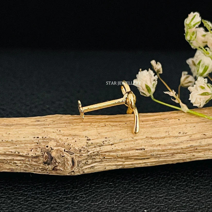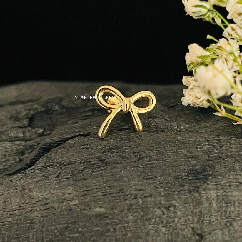 14K โบว์ทองคำขนาดเล็กแบบหลังแบนเจาะเครื่องประดับอย่างดี