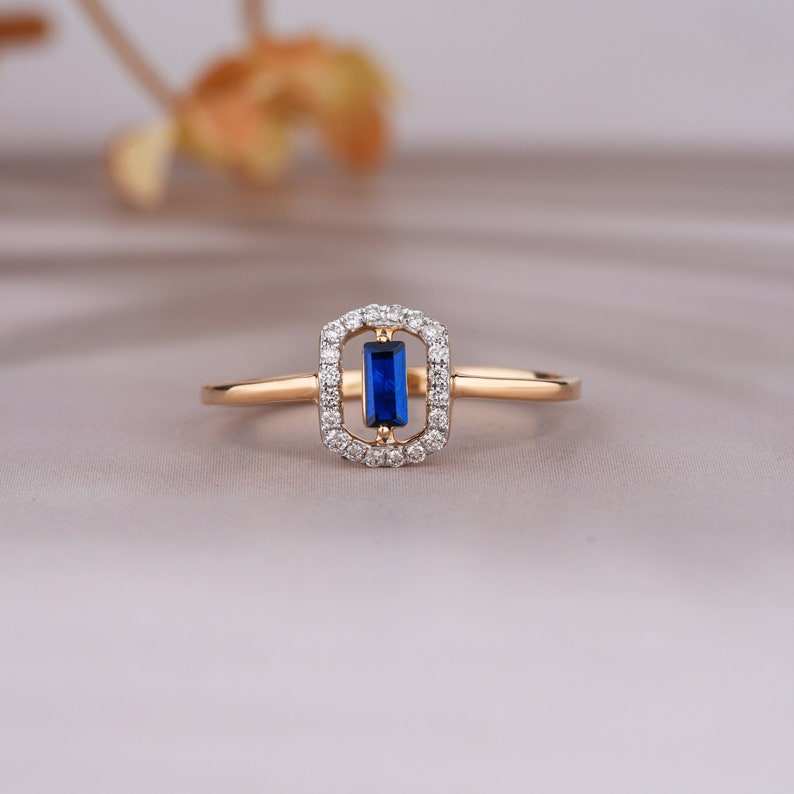 แหวนแต่งงานวินเทจสีทอง14K พร้อมไพลินแท้แหวนซ้อนที่ระลึกรักของผู้หญิงได้รับการรับรองจาก IGI